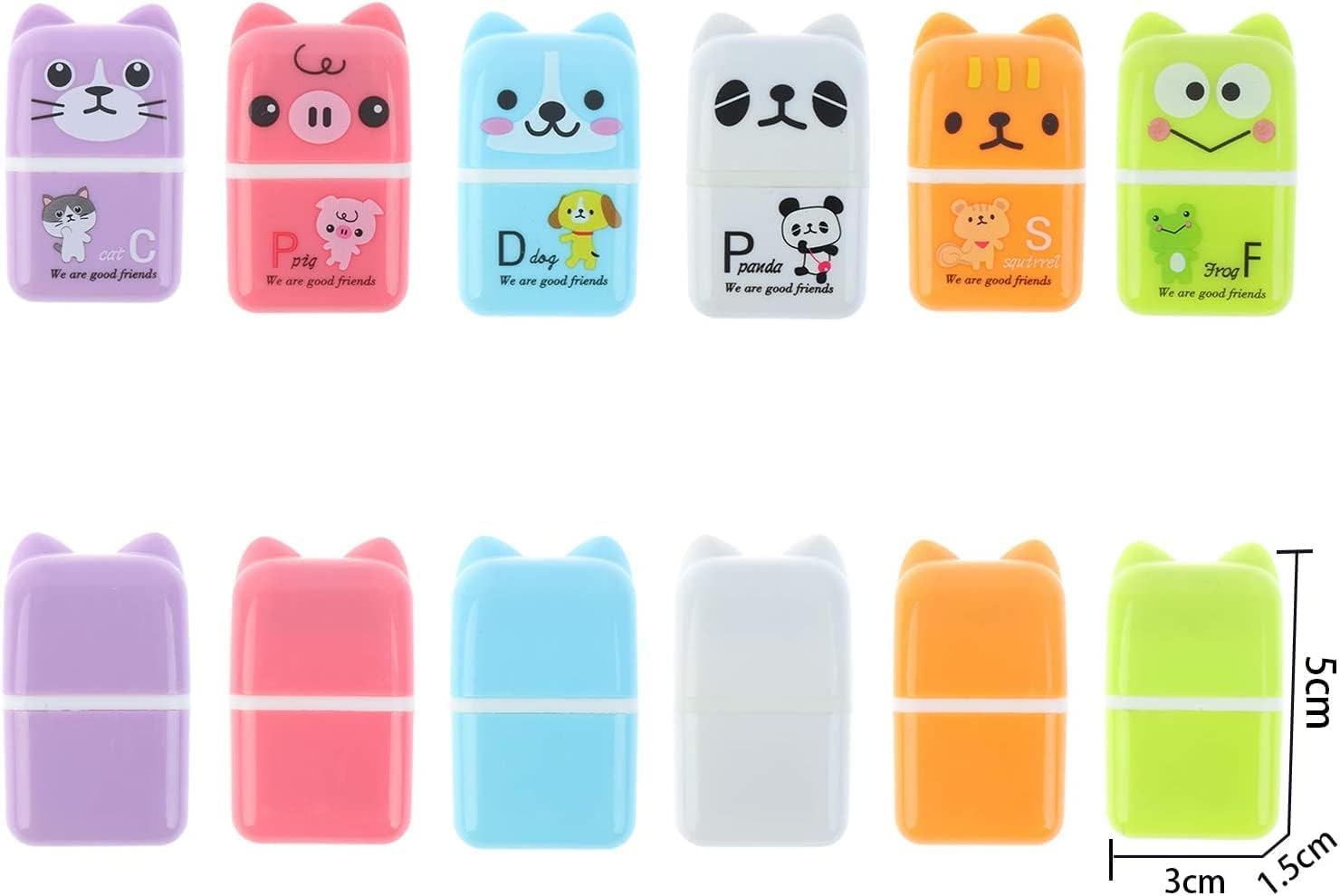 - 【Package Contents】As the picture shown, we prepared 36 pieces cute animal patterns erasers in 6 patterns for you in the package. They have 6 kinds of patterns, Blue Dog, Green Frog, Orange Tiger, Purple Cat, White Panda and Pink Pig.