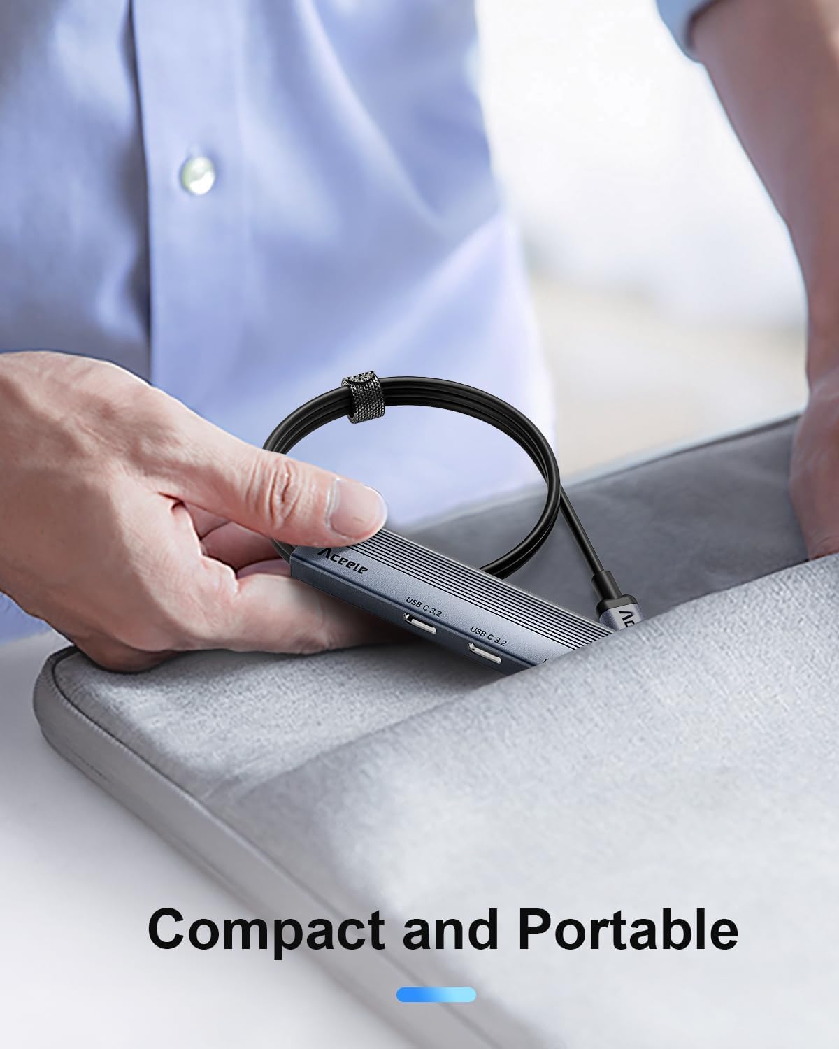 - 【3.3ft Long Cable + Velcro Closure】Upgraded USB 3.2 Gen 2 Hub has 3.3ft long cable is convenient for you to extend the USB port from the computer under desk or all in 1 PC. Use Velcro closures to organize excess cables.