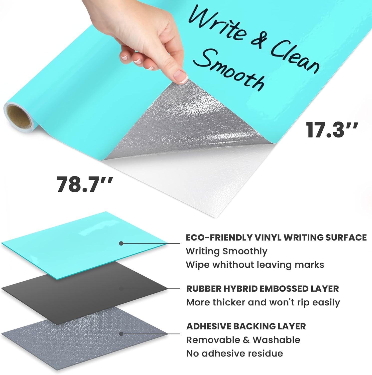 - Very Handy: Whiteboard roll comes with 3 markers with eraser for quick corrections or erasures, measures 17.3'' X 78.7'' (6.5 FT). With its own grid backing on the back, you will find white board roll is very easy to cut