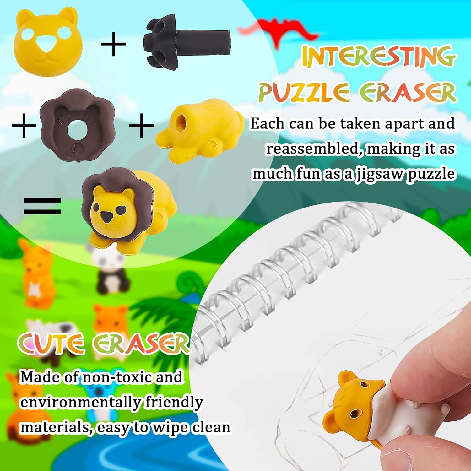 - PUZZLE PENCIL ERASERS]: Super kawaii mini animal erasers, made by non-toxic & eco-friendly latex-free material, safe for kids. Each puzzle toy approximately 1”, comes individually packed