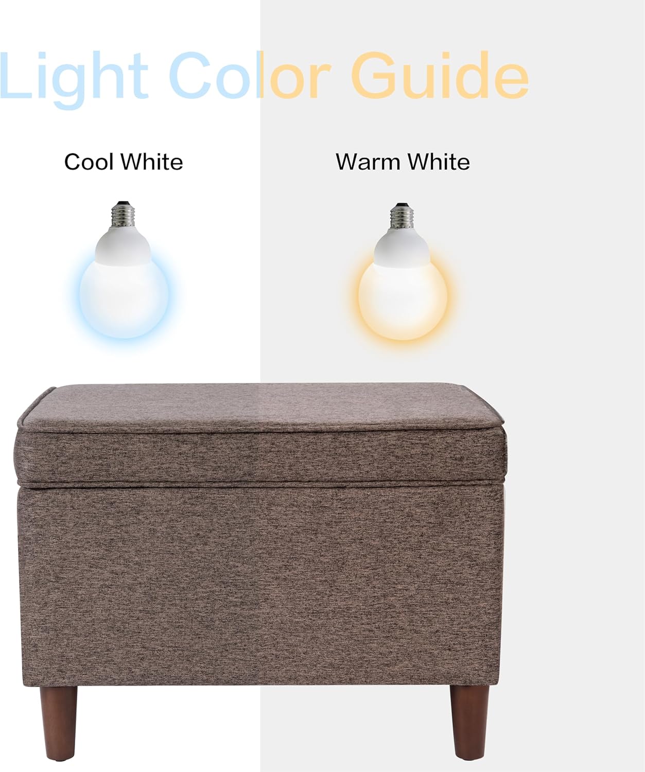 - STORAGE OTTOMAN: Our Accent Piece Fabric Ottoman features a hinged lid and with its versatility can be used as a Foot Stool Ottoman or Vanity Seat | Perfectly completed with tapered wood legs in a striking dark walnut finish along with stitching details for added interest