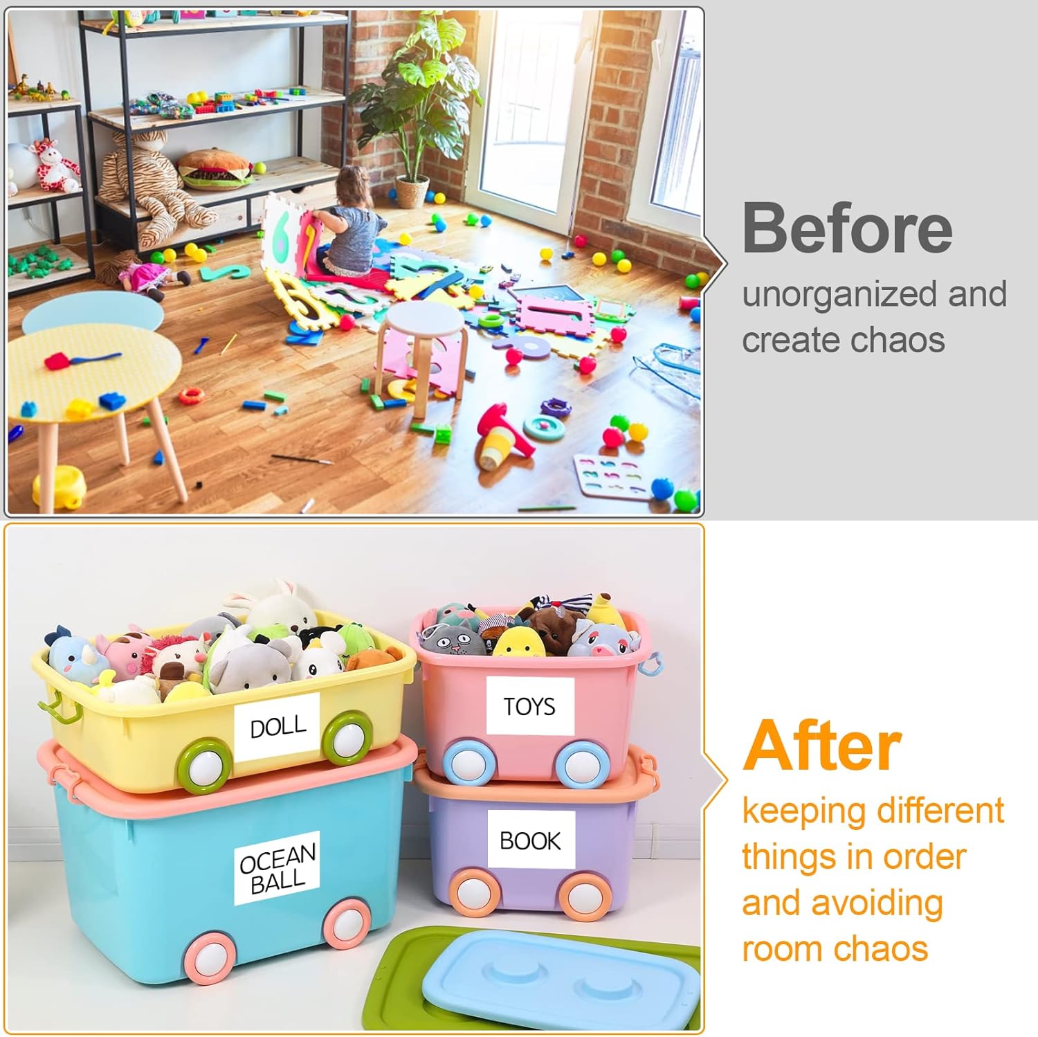 - Multipurpose Organization: Our Removable Labels for Storage Bins are perfect for home, school, and enterprise use on storage containers with flat, smooth surfaces. Storage Bin Labels Effortlessly organize kitchen utensils, office supplies, clothing, holiday decorations, toys, or tools. Make your items easy to sort and identify.