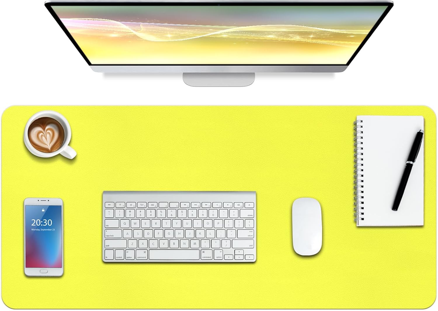Boutilon Leather Desk Pad Protector,Non-Slip Mouse Pad,Laptop Desk Pad,Office Mouse Mat,Waterproof Leather Desk Blotter,Desk Writing Pad for Office and Home (S-Lemon,24"x 14")