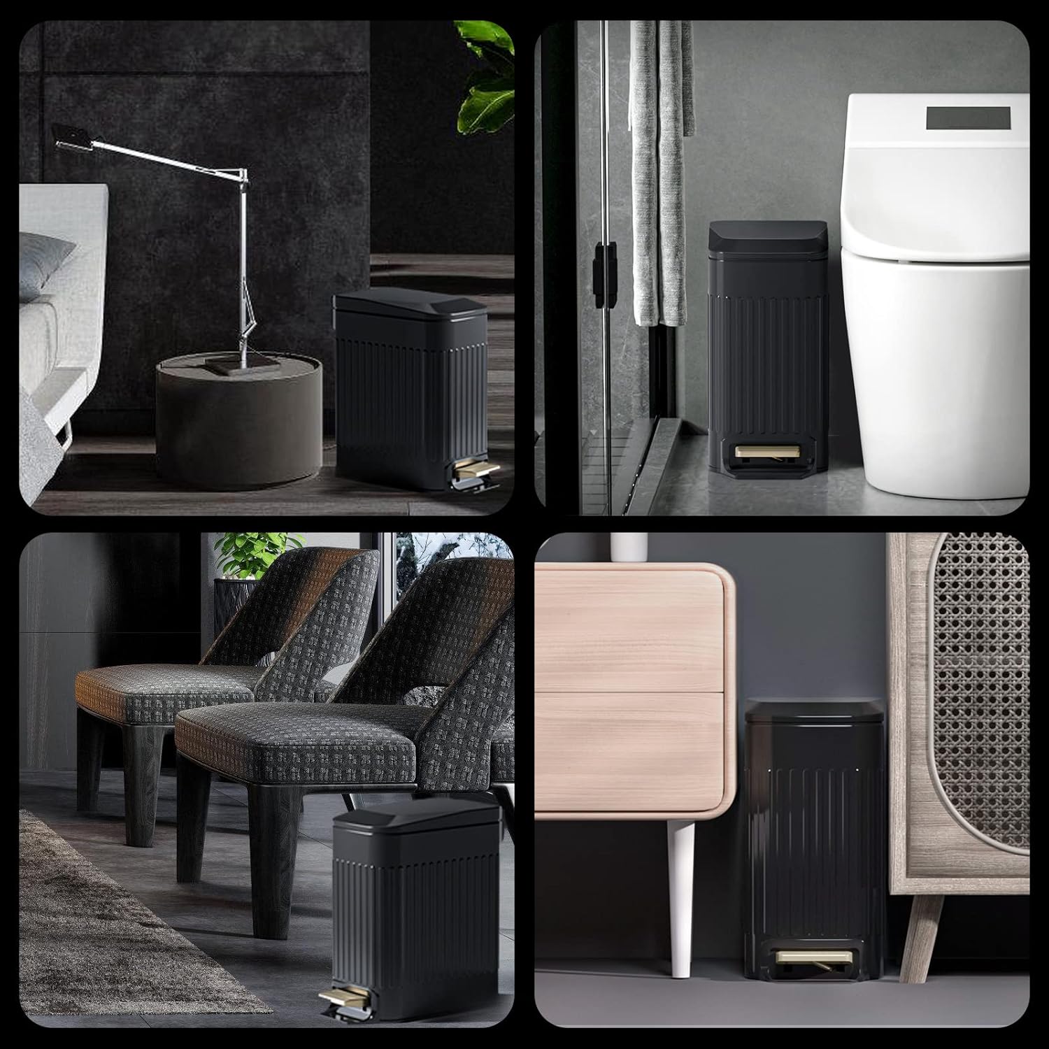 Small Bathroom Trash Can with Lid Soft Close-6L/1.6 Gal Slim Step Garbage Can-Metal Pedal Wastebasket-Narrow Rectangle Garbage Container Bin for Corner Office, Bedroom, Toilet, Live Room-Black