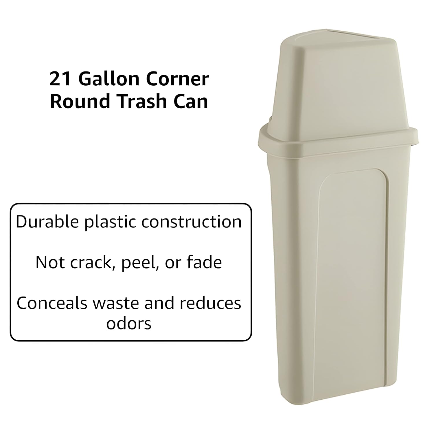 Recycling Bin with Push Door Lid, 21 Gallon Corner Round Trash Can, Crack-Resistant, Commercial Durable Garbage Can, Reinforced Bottom, Ideal for Home, Kitchen, Bar, Hotel, Restaurant, School