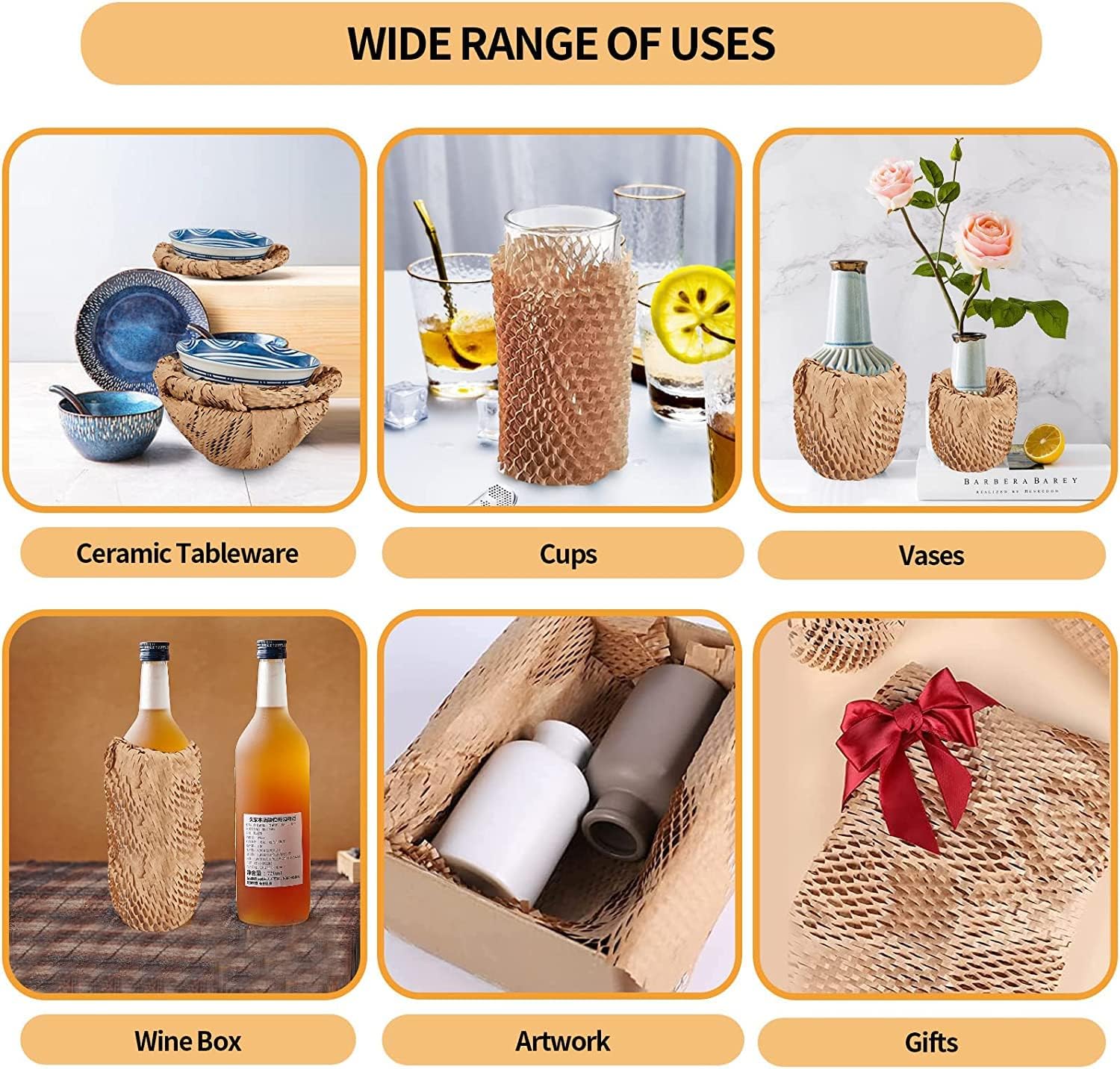 - Environmental Friendly Packing Supplies: Eco friendly 100% biodegradable kraft paper, green alternative to plastic packaging materials .After stretching, the honeycomb structure can increase the cushioning performance and effectively protect the items that need to be wrapped.b packing paper.