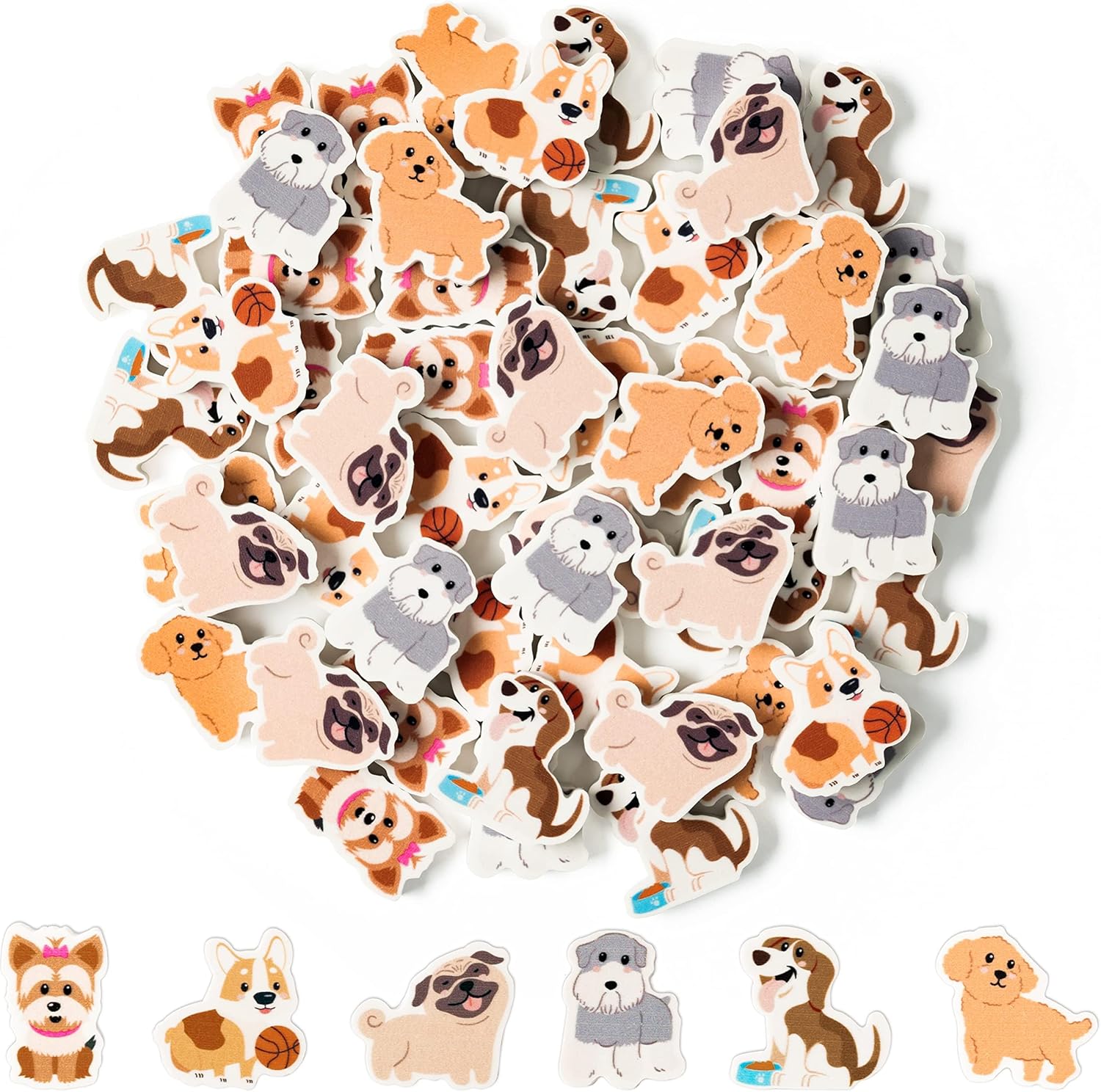 ANGOLIO 60PCS Animal Erasers for Kids - Cute Dog Pencil Toppers Classroom Rewards, 3D Mini Desk Pets for School Party Favors Birthday Gifts & Game Prizes