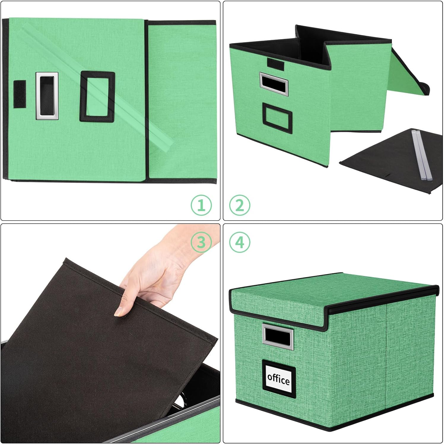 - Collapsible Multifunctional Filing Storage Organizer - The outer box with linen fabric can be dustproof, inside and the bottom support is made of thickened cardboard, which is environmentally friendly and not easily deformed. The cover with Velcro not only allows us to cover the file box easily, but provides more storage space for the file. It also acts as a small filing cabinet for tax documents, legal files and other documents storage. When we are not using it, we can fold it up to save space.