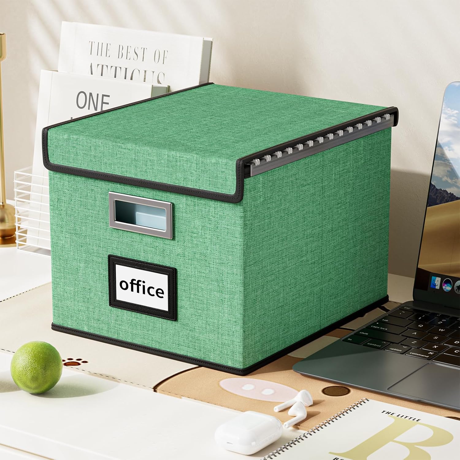 Huolewa Decorative File Organizer Box with Lid, Collapsible File Storage Organizer Boxes with Lids, Linen Hanging Filing&Storage Boxes for Office/Decor/Home, Filing System for File and Folders Storage