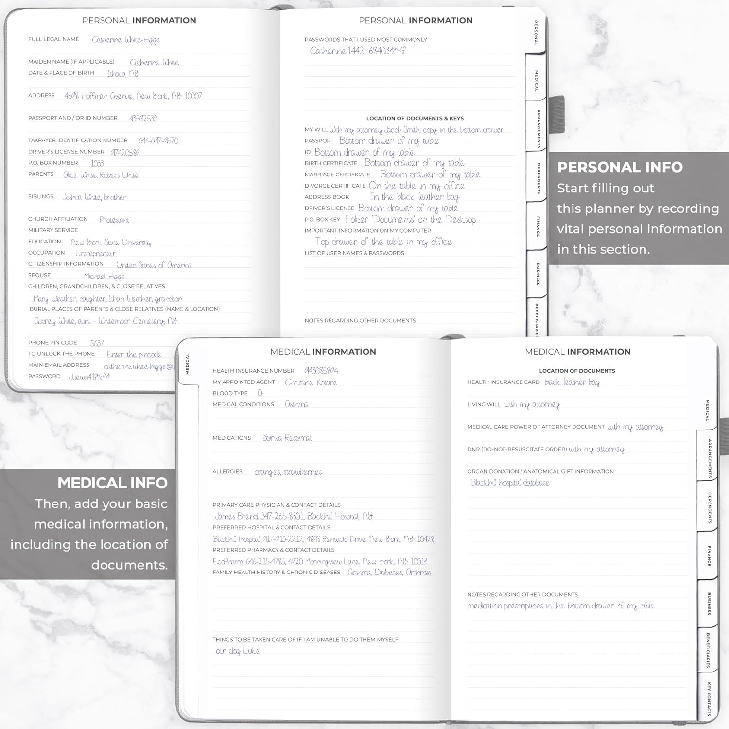 - PREPARE DETAILED INSTRUCTIONS TO GUIDE YOUR LOVED ONES: This guided final arrangements planner is an easy-to-use tool for organizing all essential personal information, from medical data to passwords and financial records.