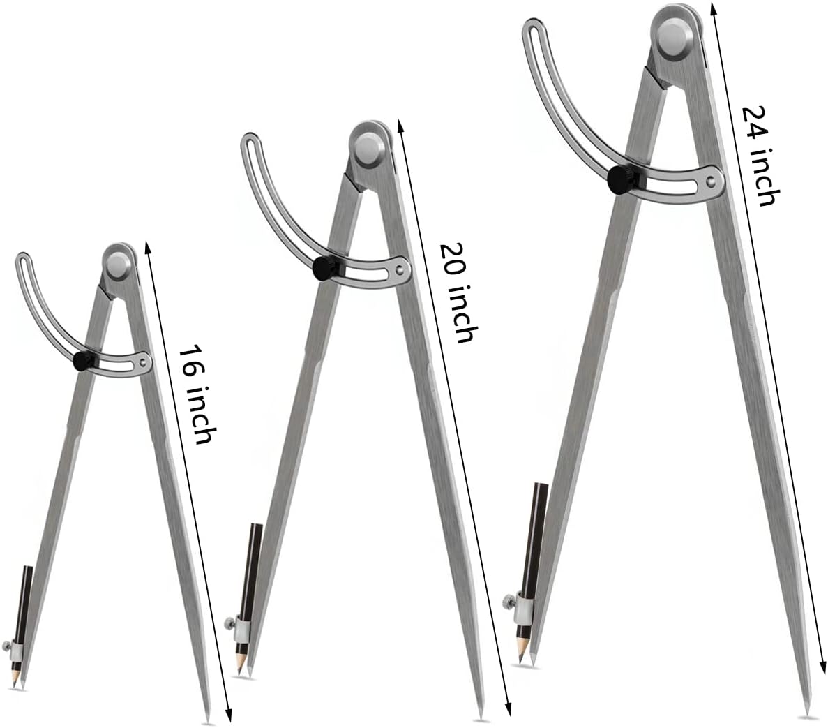 - 【Large size】:Professional All Metal Compass / 16", 20", 24" large size Divider For Woodwork, woodworking, metalworking, leatherworking, math, etc.