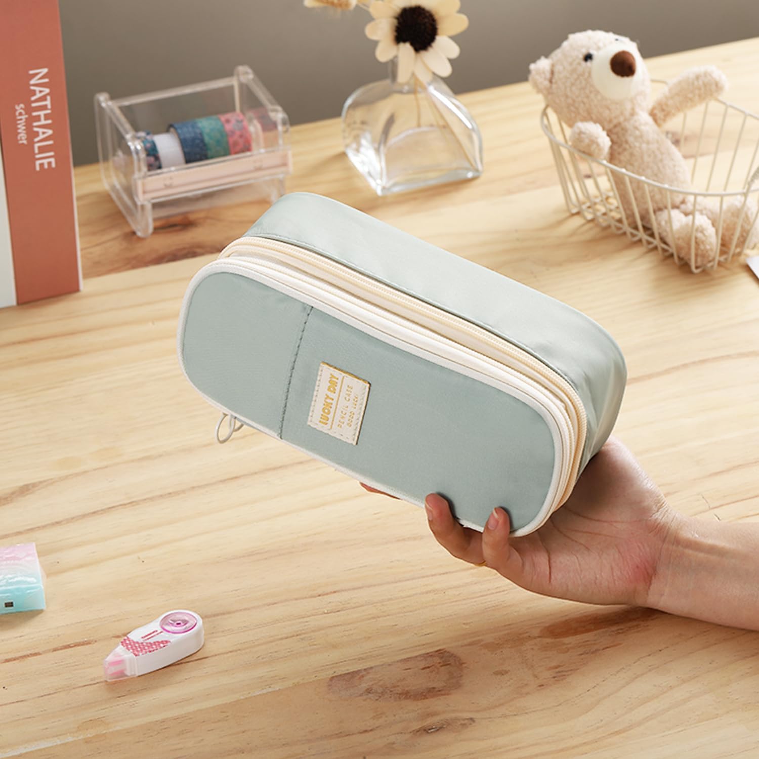 - Large Capacity: The Dimensions is 9.06'' x 4.33'' x 3.54'' This pencil case allows up to 80-100 pens/pencils, 20 cm ruler, pencil sharpener and other stationery gadgets.