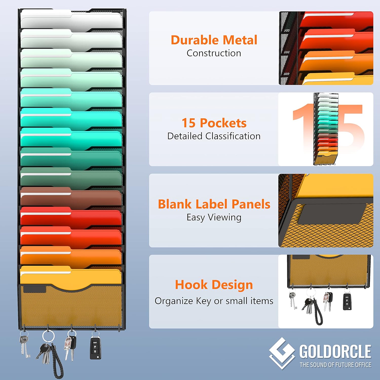 - 【Zero assembled】The wall mounted file folder organizer comes ready for us and it is also easy to hung up on the wall. No Assembly Required
