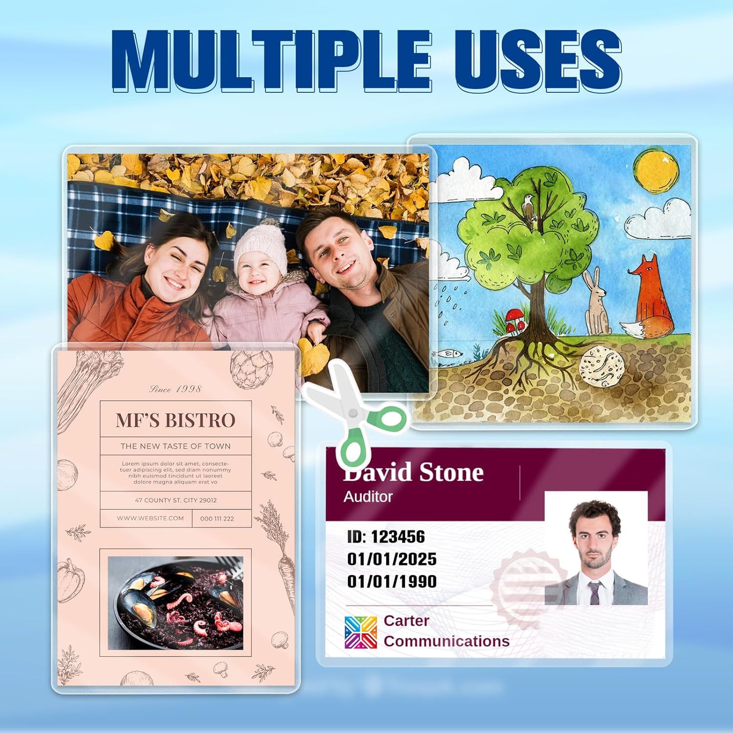 - Various uses: laminate business cards are suitable for companies, schools, shopping malls, hospitals, etc. They can be used to make identity cards for students, ID cards for employees, factory badges, luggage tags, student ID cards, exhibition cards, etc.you can easily protect your valuable prints.ensuring your important documents and memories are perfectly protected .