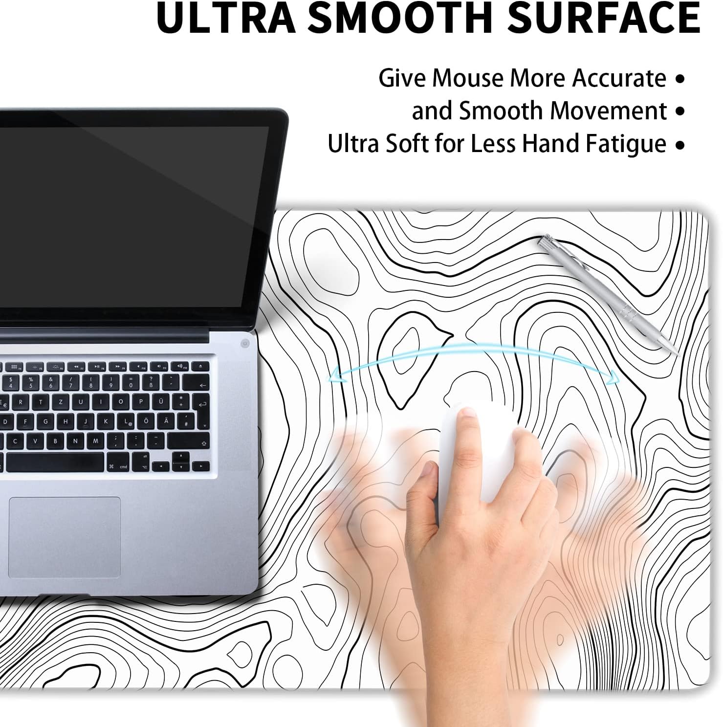 - ★【Superior Control Surface】: White topo geographic map lines computer large mouse pad designed with superfine fiber braided Material, smooth surface will provide you with frustration-free mouse movement.The performance-tuned keyboard pad greatly enhances control accuracy and speed in working or gaming.