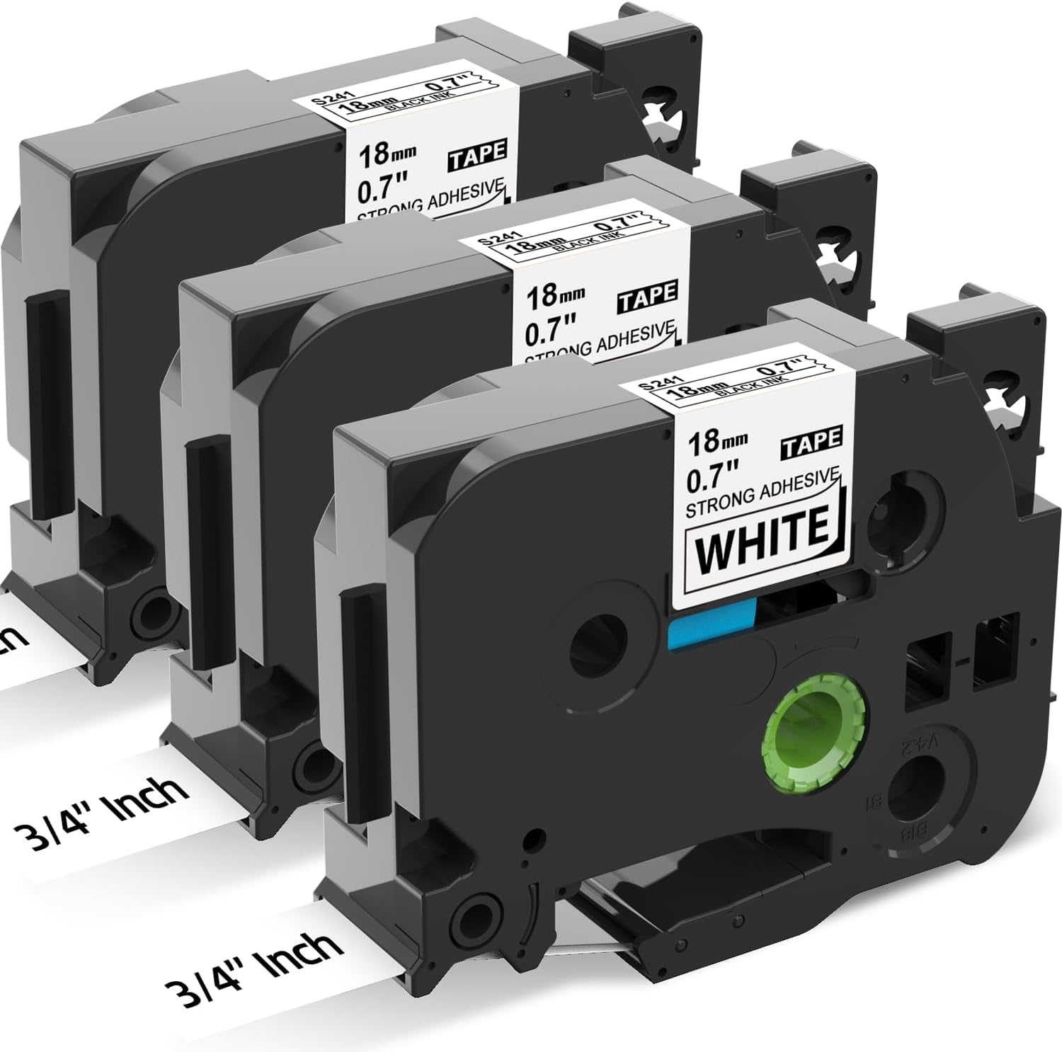 - Color: Black on White, 3-pack replacement for Brother TZE-S241 TZES141 18mm extra strength adhesive tape. Size: 18mm x 8m(3/4 inch x 26.2 ft)