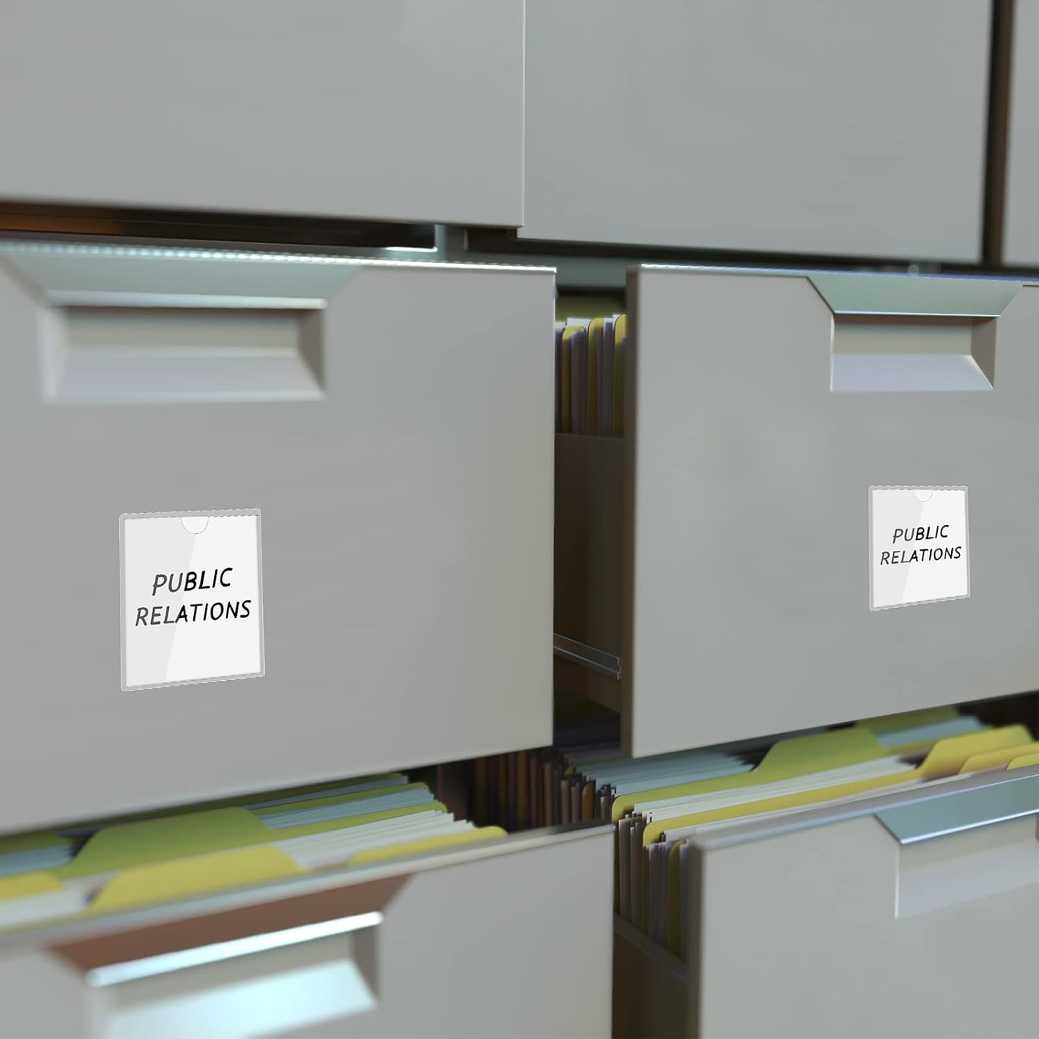 Chinco 50 Pack Clear Adhesive Pockets, Labels for Storage Bins, Plastic Self Adhesive Index Card Holder with Top Open for Organizing Bins Box Drawer(4.1 x 4.1 Inches)