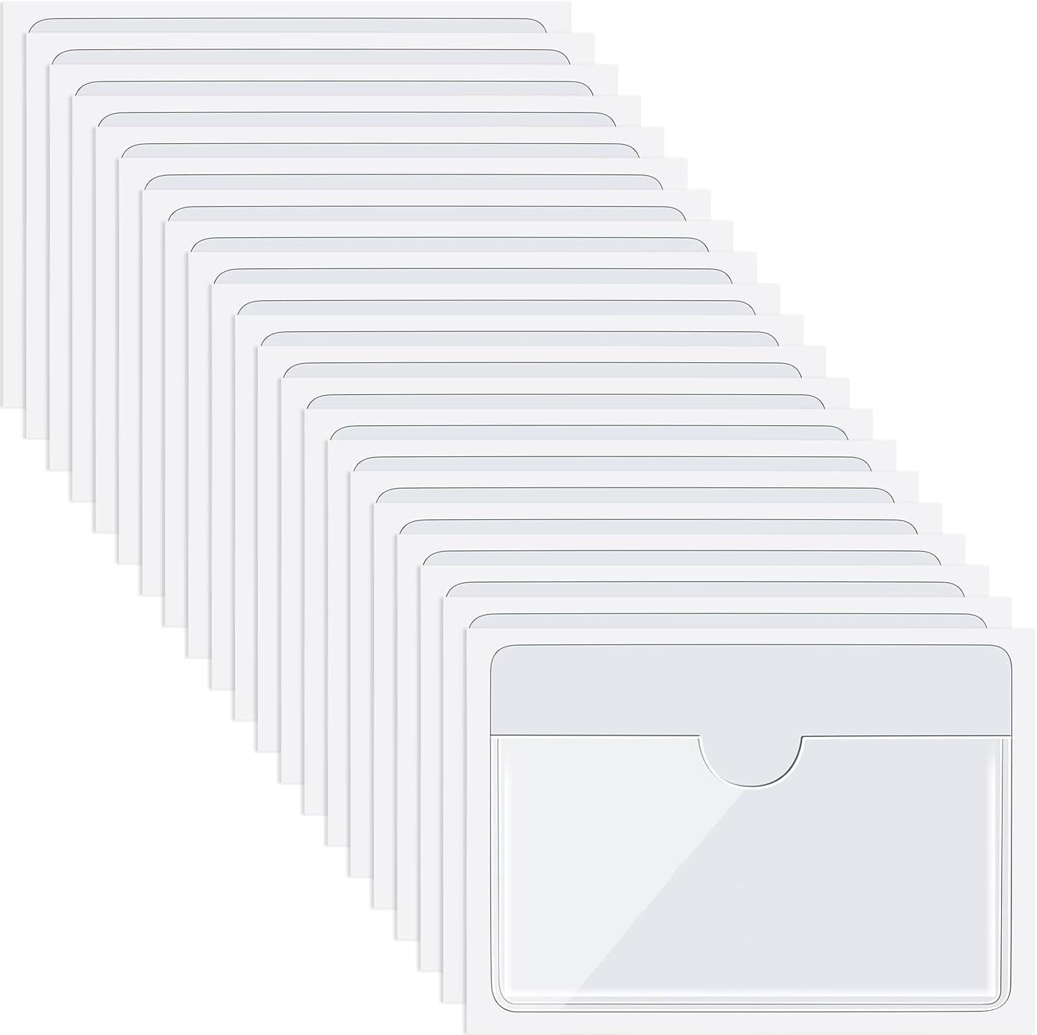 Chinco 50 Pack Clear Adhesive Pockets, Labels for Storage Bins, Plastic Self Adhesive Index Card Holder with Top Open for Organizing Bins Box Drawer(2.5 x 4.06 Inches)