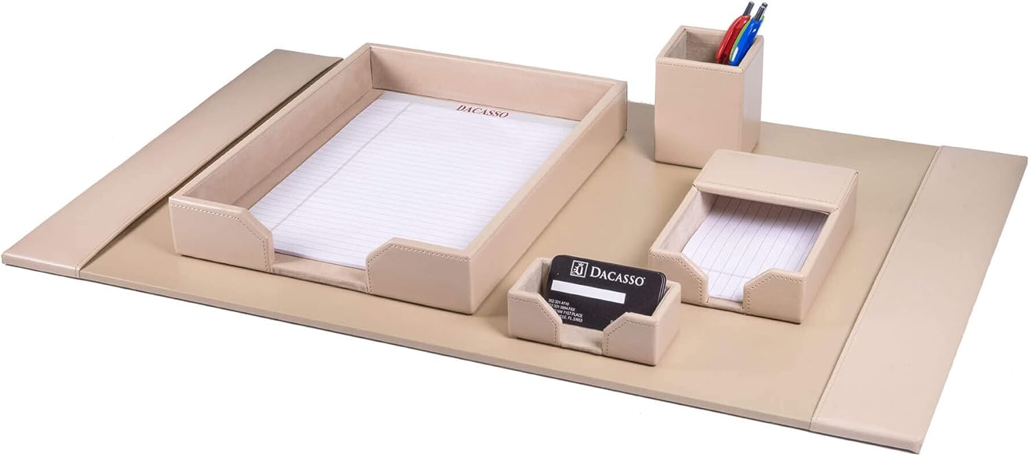 DACASSO Bonded Leather Desk Set - Luxury Leather Desk Pad & Desk Organization Essentials (White Latte, 5 Piece)