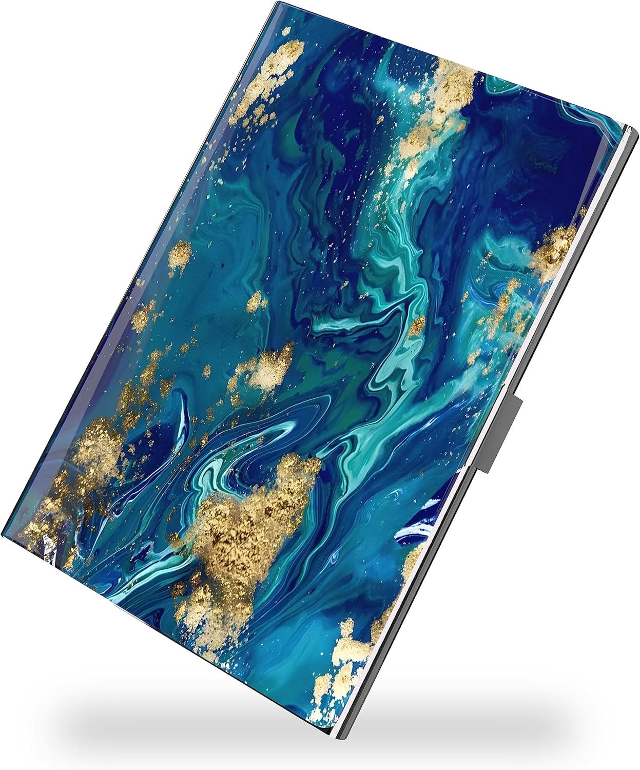 Business Card Metal Slim Organizer, Professional Stainless Steel Square Pocket Wallet for Office Workers, Compact and Portable for Pockets (Dark Blue Marble)