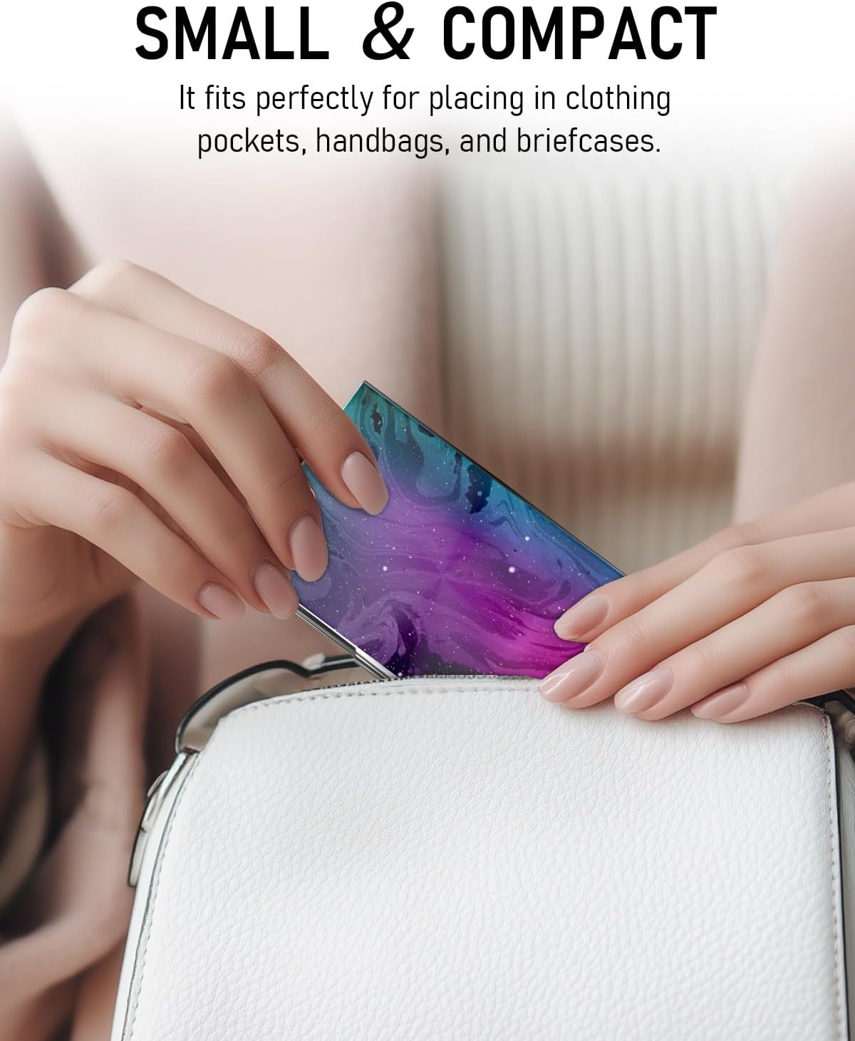 Business Card Metal Slim Organizer, Professional Stainless Steel Square Pocket Wallet for Office Workers, Compact and Portable for Pockets (Purple Starry Sky)
