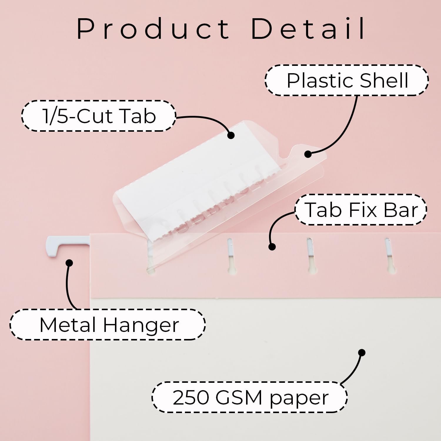 - Sorted Tabs - Each hanging folder features a 1/5-cut custom tab for hassle-free organizing and access to documents. Our pretty hanging folder can store bulky files, medical charts, or product manuals and keep files separate