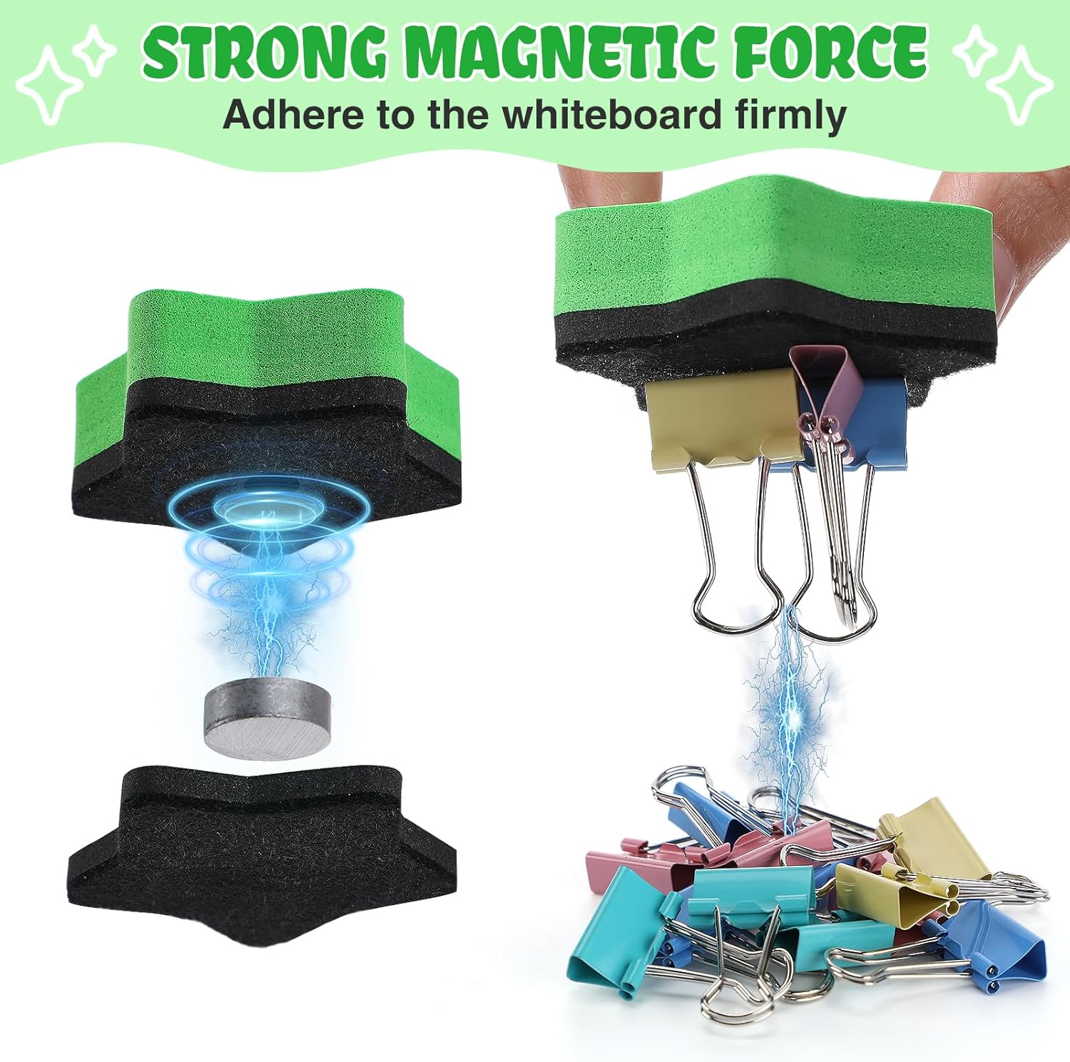 24 pcs Strong Magnetic Whiteboard Eraser - Mini Dry Erase Erasers, Small Chalkboard Cleansers Wiper for Kids and Teachers Classroom Must Haves School Supply Home and Office, Star Shaped