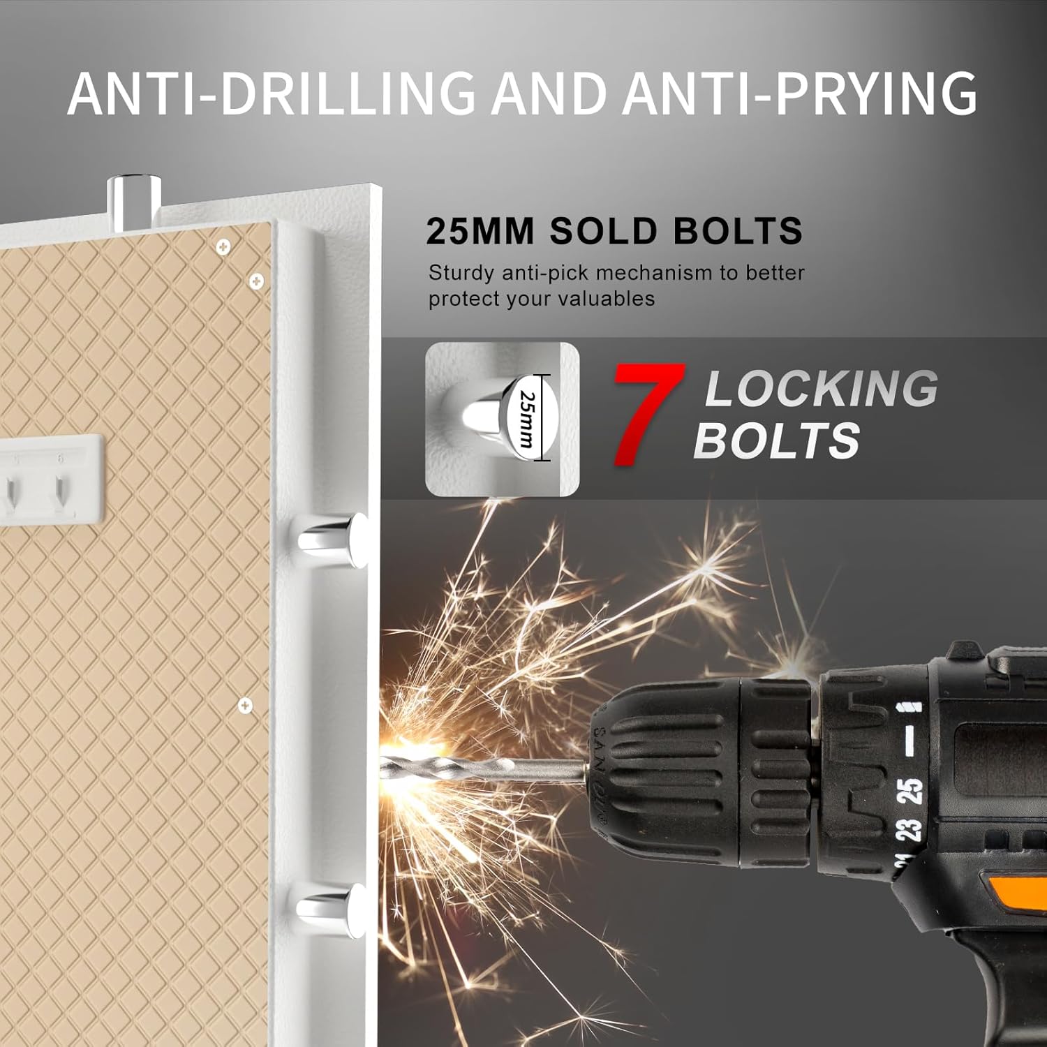 - ✅【EXTRA LARGE SECURITY SAFE BOX】:Our extra-large security safe weighs 235 pounds, so it's hard for anyone to steal it. 75mm extra-thick explosion-proof steel door, 7*25mm high-strength solid locking bolts and pry-proof concealed hinges enhance the security of the safe and provide reliable protection for your valuables, plus you can use expansion screws to secure the safe to the wall to further enhance anti-theft.