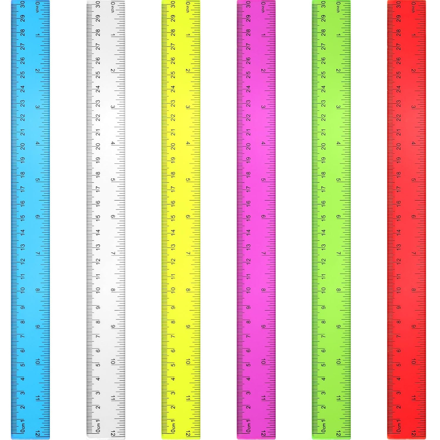 - 【6 Assorted Color Plastic Rulers】The Clear ruler's size is 12 inches/30 centimeters and is made of transparent plastic. Six colors - pink, transparent, blue, red, green, and yellow - will meet the preferences of most people. Children and students will also be happy because they have so many cute acrylic rulers to choose from.
