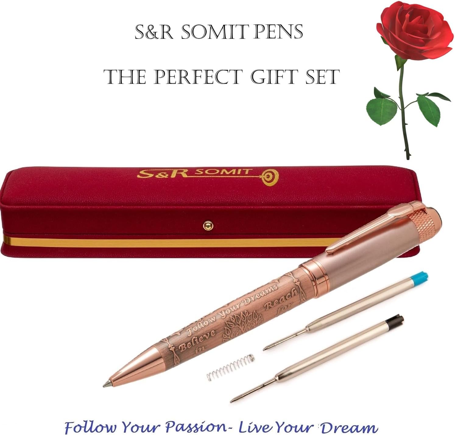 S&R Somit Fancy Pen with Gift Box - Luxury Pen for Women β Valuable Business, Office, Executive Gift for Family & Friends β Special Engraving & Led Decorative Box (GOLDEN ROSE)