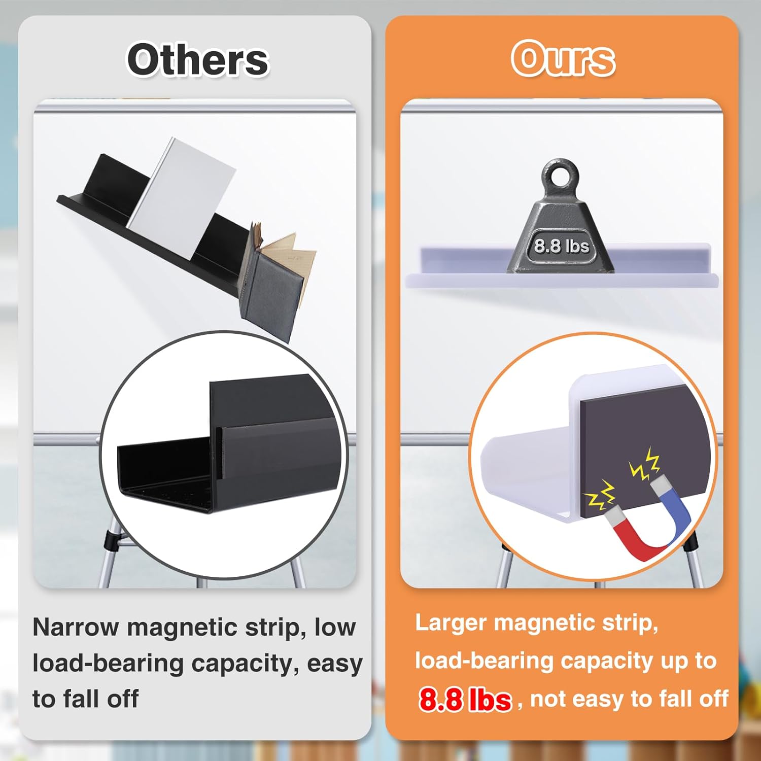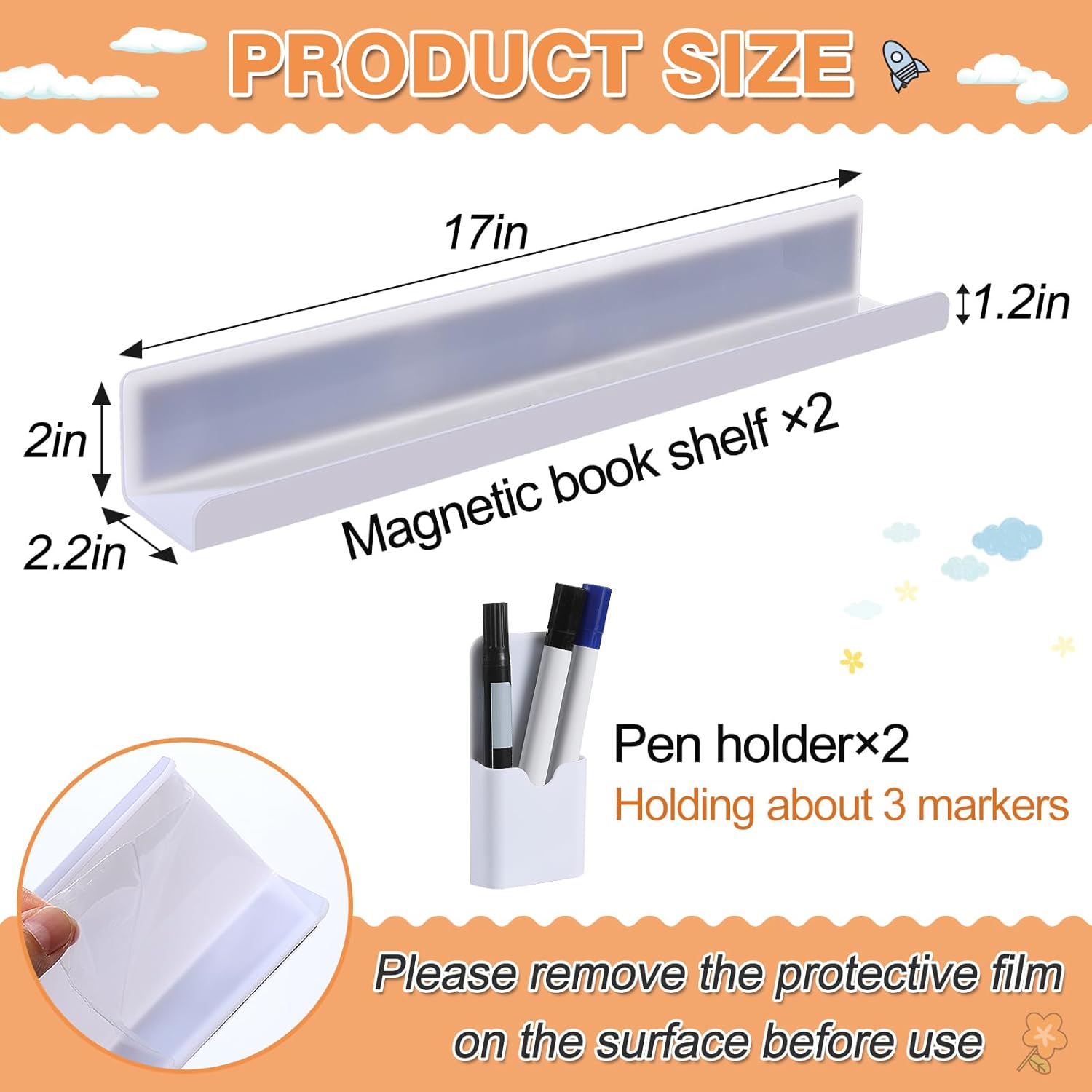 - Ideal Size: The magnetic display shelves measure about 17×2.2×2in, which can hold more books, as well as rulers, board erasers, etc.