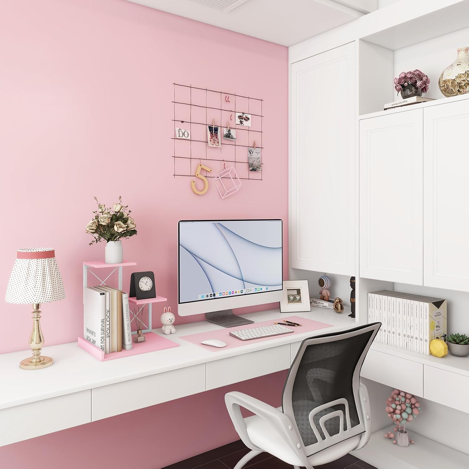 - Stylish and Chic Design: Our pink desktop shelf organizer adds a touch of elegance and femininity to any office space. The soft pink color complements a women's office decor, creating a stylish and chic atmosphere.
