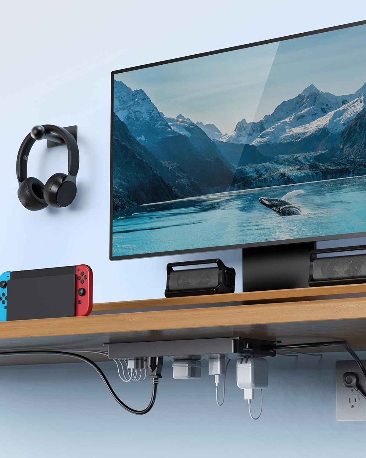 - 【Mountable and Flat Plug】Our power strip equipped with 4 screw holes in the corners, allows you to securely mount the surge protector box on the wall or under the desk. The 45° angle flat plug design is perfect for hiding behind furniture, bookshelves, and bedside tables in tight spaces.