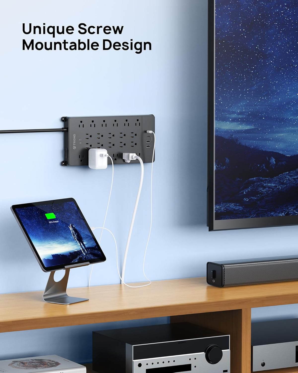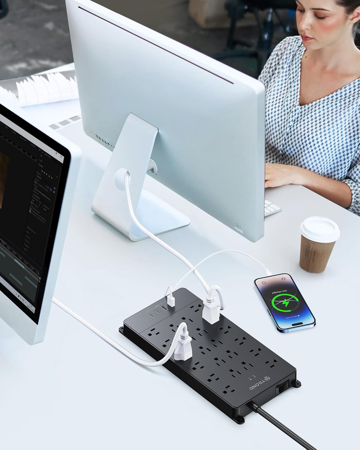 - 【All The Power You Need】TROND surge protector power strip features 22 widely-spaced AC outlets, allowing you to have all your electronic equipment plugged in at one place instead of numerous extension cords. Ideal for home theater, entertainment center, office, and gaming room.