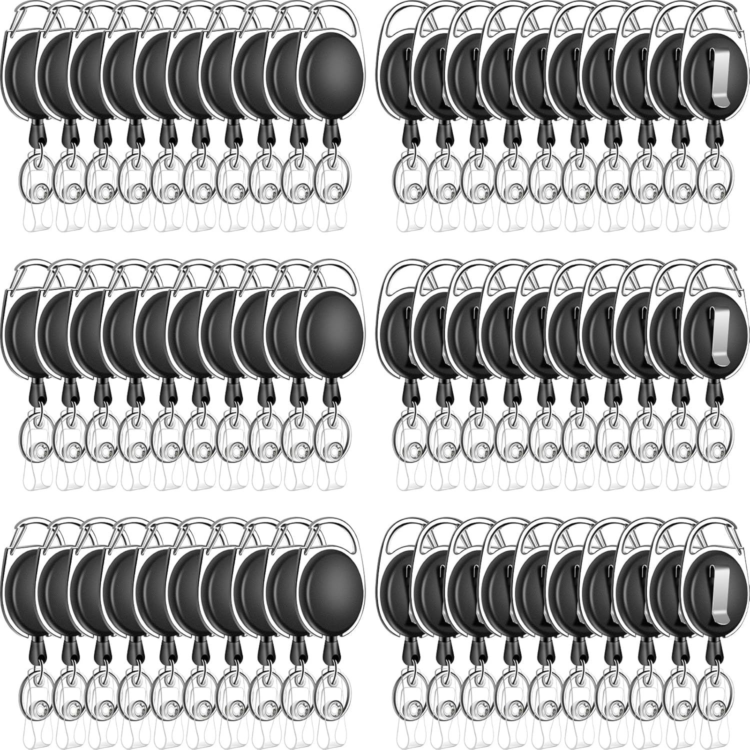 60 Pack Retractable ID Badge Holder Badge Reel with Carabiner and Belt Clip Badge Reels Retractable with Key Chain for Office Worker Doctor Nurse