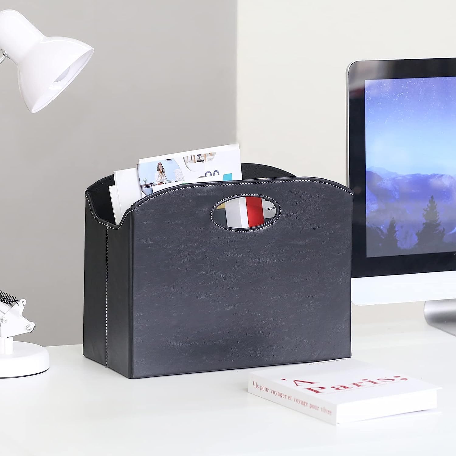 EZDeco Magazine Holder Foldable Magazine Rack Floor PU Leather File Holder Newspaper Book Storage Basket Document File Folder Organizer for Office Home (Black-2)