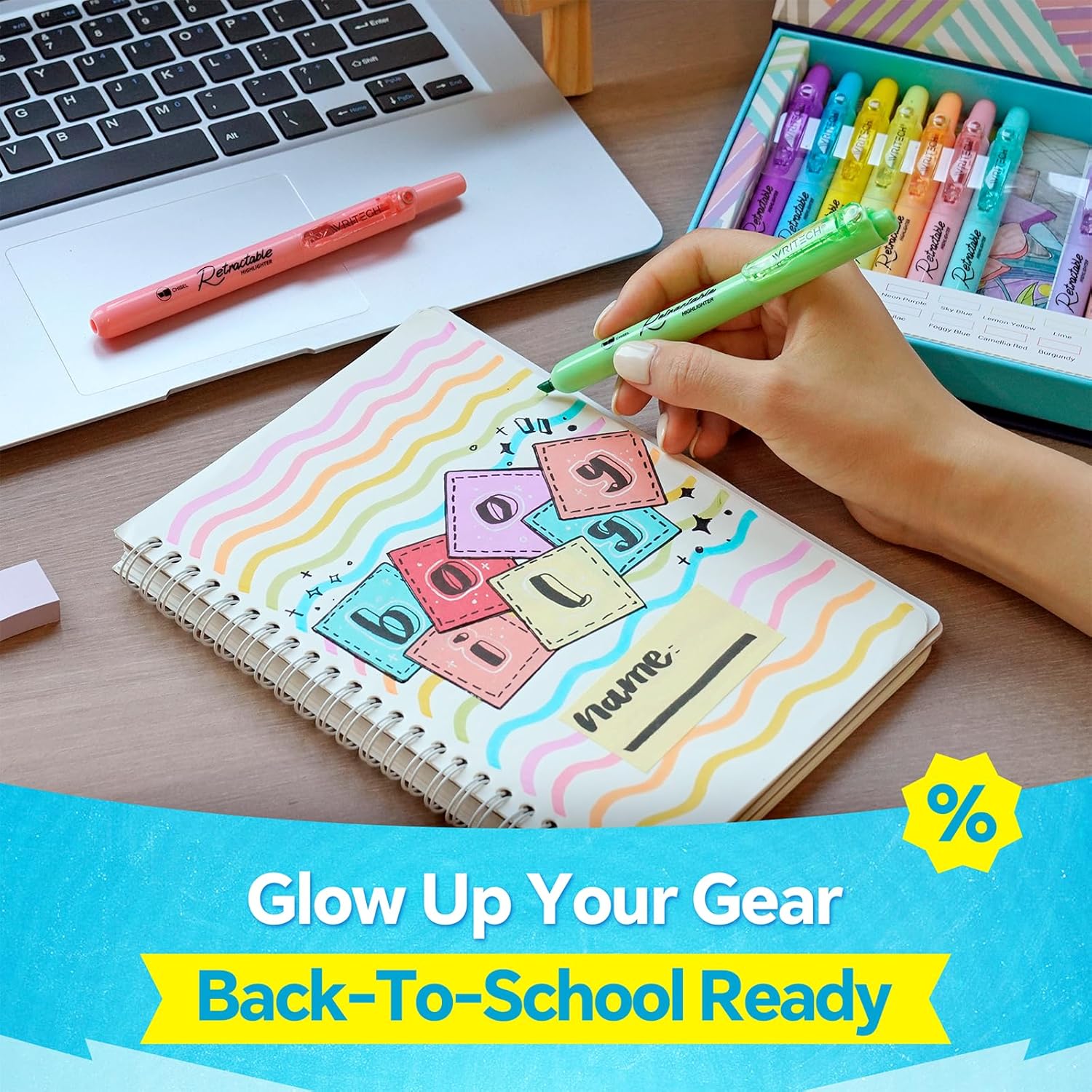 WRITECH Retractable Highlighters Assorted Colors: 18ct Aesthetic Highlighter Markers with Gift Case Multicolor Ink Chisel Tip No Smear for Highlighting Journaling Coloring Bible