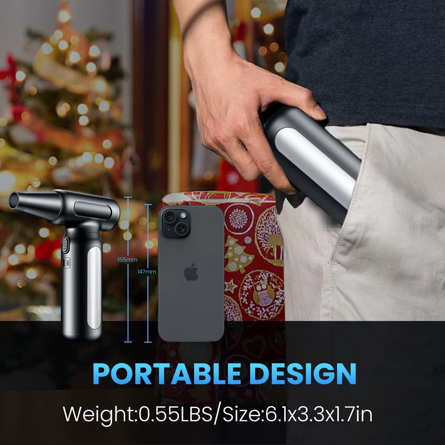 - Mini air blower【easy to carry, fits in pocket 】blower fan only have【1.35*5.9 Inch, 0.5lb】 air duster fits in your pocket without any stress,is easy to carry and used indoors and outdoors. Mini blower Light weight and more comfortable user experience.