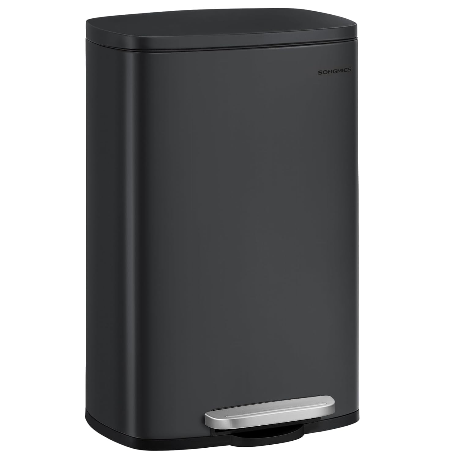 SONGMICS 13 Gallon (50 L) Trash Can, Stainless Steel Kitchen Garbage Can, Recycling or Waste Bin, Soft Close, Step-On Pedal, Removable Inner Bucket, Black ULTB050B01
