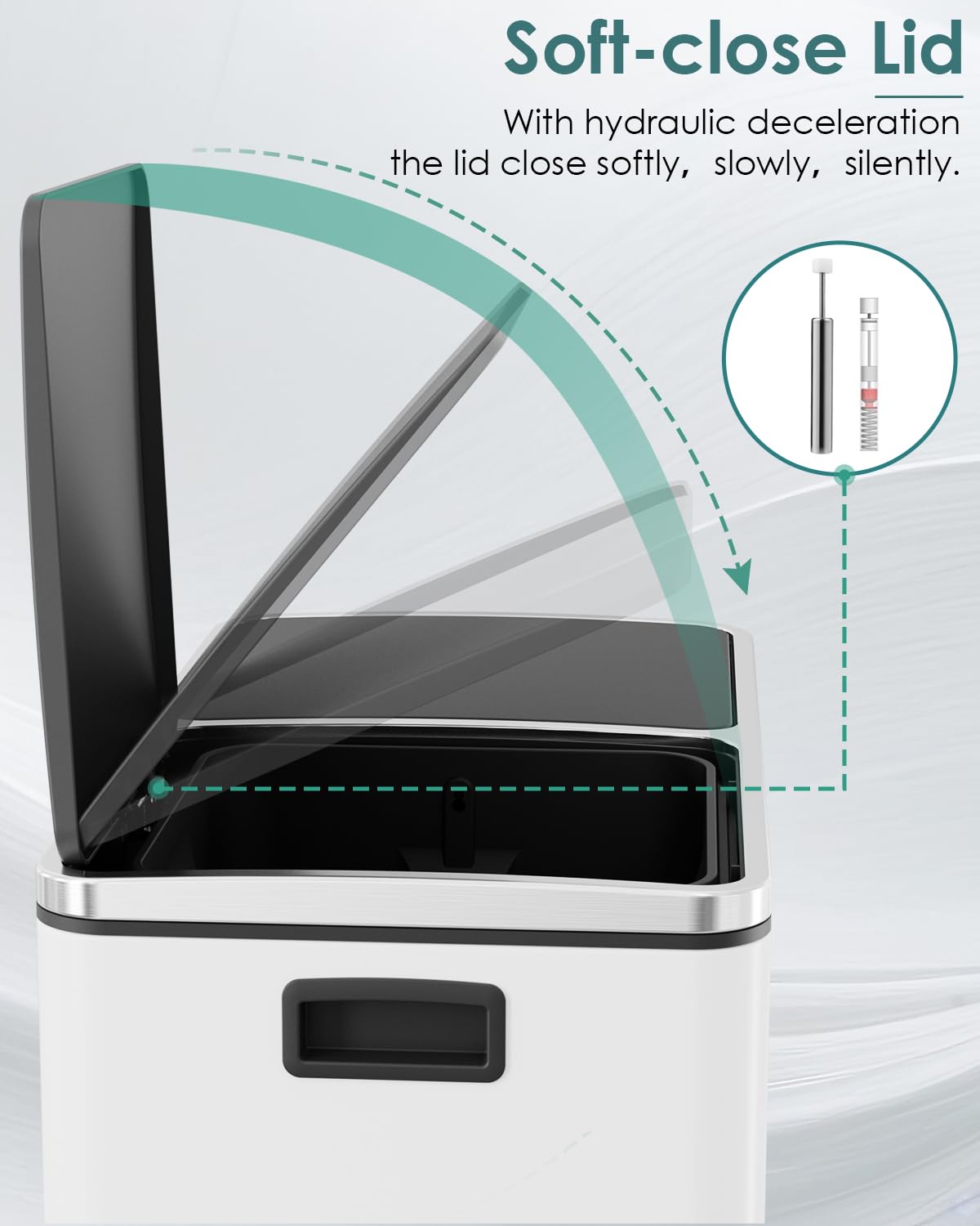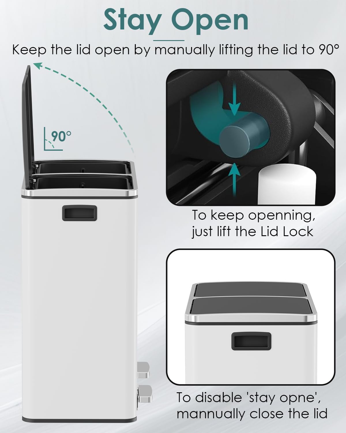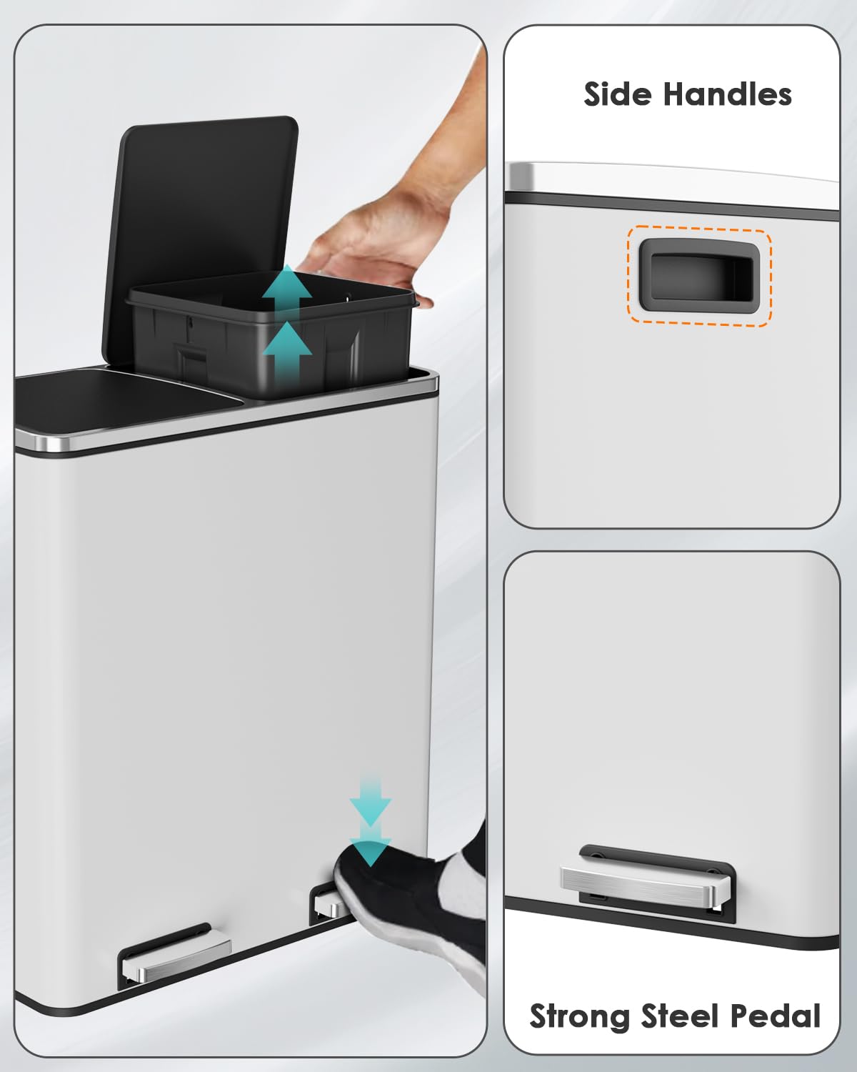 - 2*8 GALLONS COMPARTMENTS: Trash can has two independently compartments for trash and recyclables, making it easy to sort waste.
