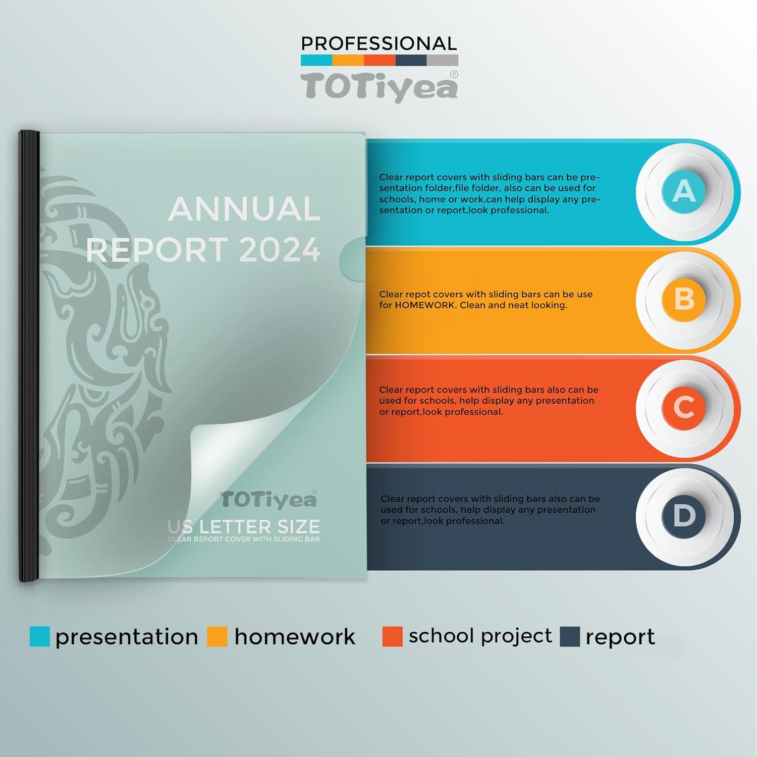 - WIDE USES: Clear report covers with sliding bars can be used as homework folders, presentation folders, file folders, suitable for schools, home or work,can help display any presentation or report.