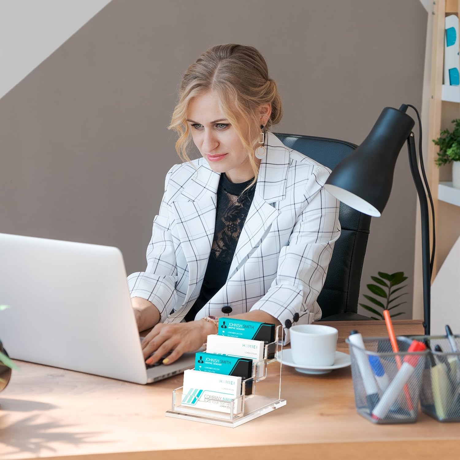 HIIMIEI Acrylic Business Card Display, Multiple Card Holder for Office, Home, Restaurant - 4 Slot 4 Tier