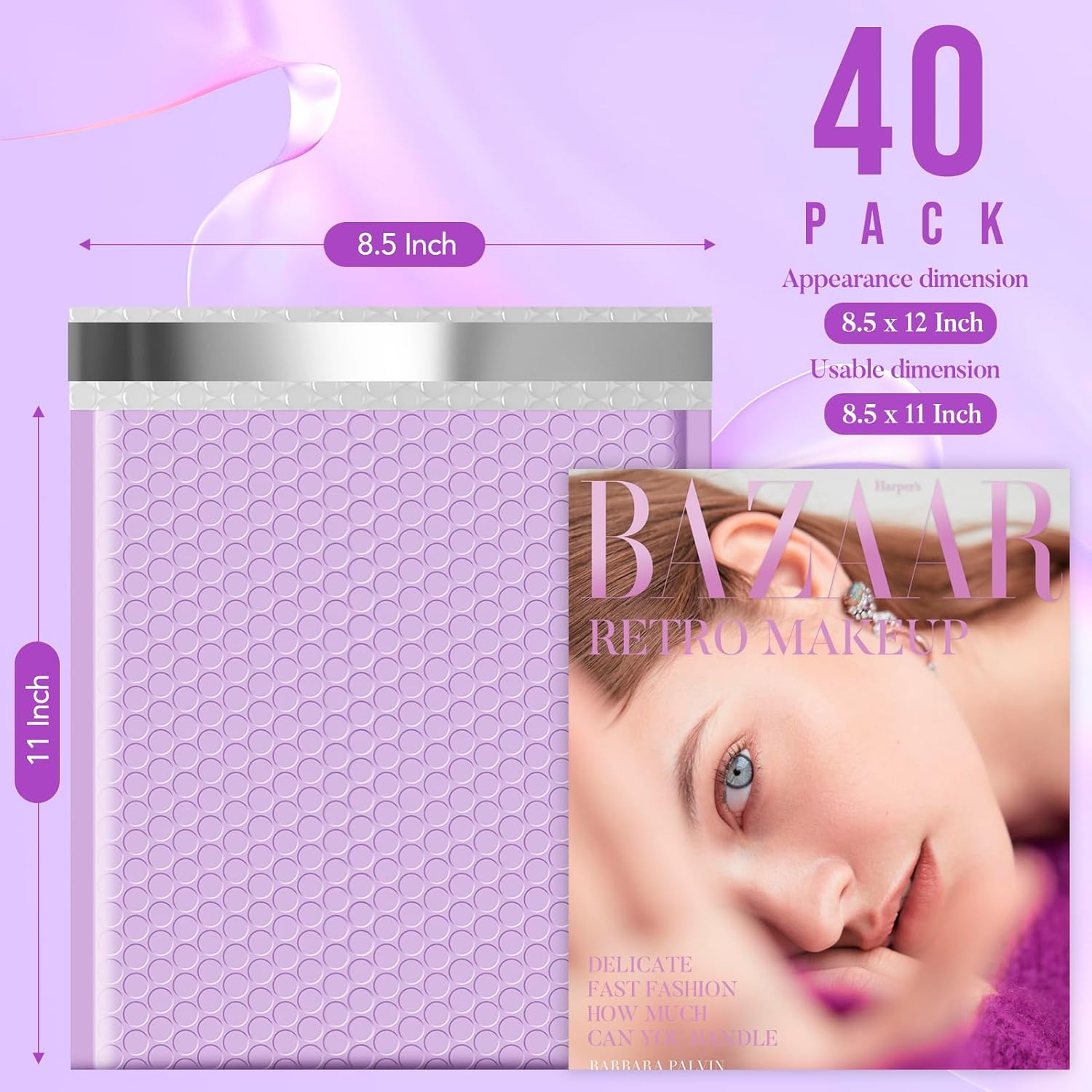 - Opaque Padded Envelopes: Our lavender bubble mailers 8.5 x 12 (inner size is 8.5x11 inch) with full air and inner lining is using opaque film, the items in the padded mailers cannot be seen, even if there is strong light, which can protect your privacy well.