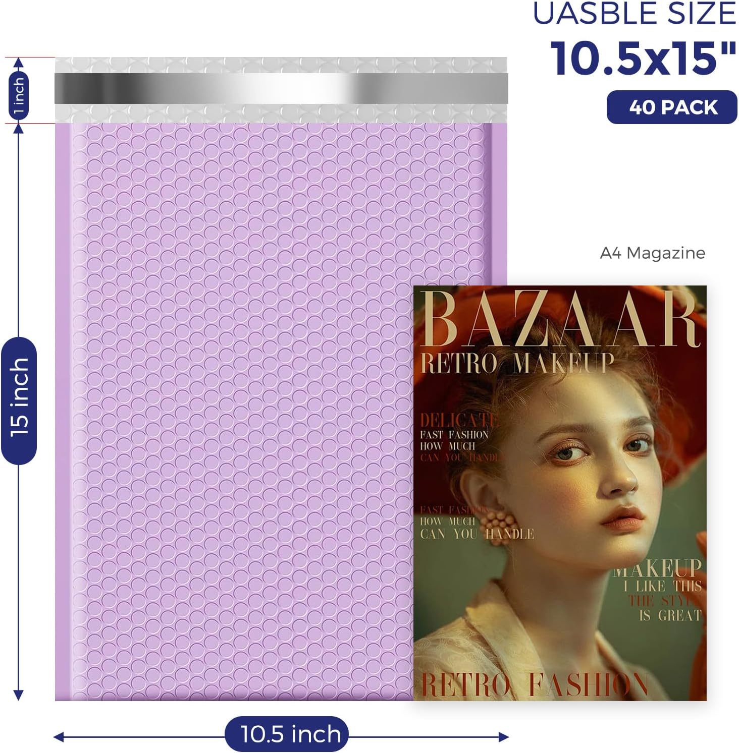 Fuxury Large Bubble Mailers 10.5x16" 40 Pack Self Seal Padded Envelopes Waterproof Mailing Envelopes Bubble Padded Mailers for Packaging, Small Business #5 Lavender