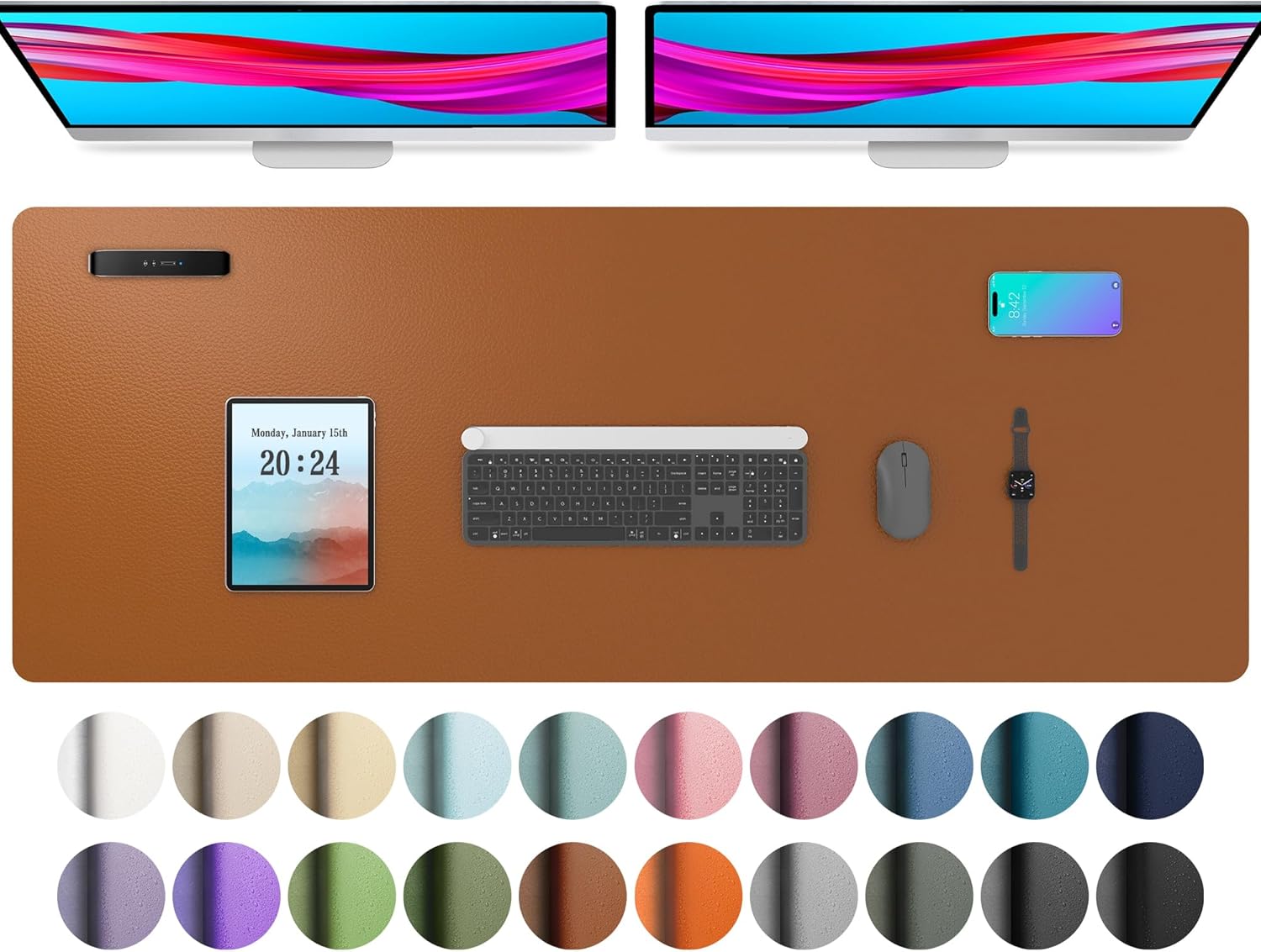 Aothia Leather Desk Pad Protector, Mouse Pad, Office Desk Mat, Non-Slip PU Leather Desk Blotter, Laptop Desk Pad, Waterproof Desk Writing Pad for Office and Home (48"x17",Brown)