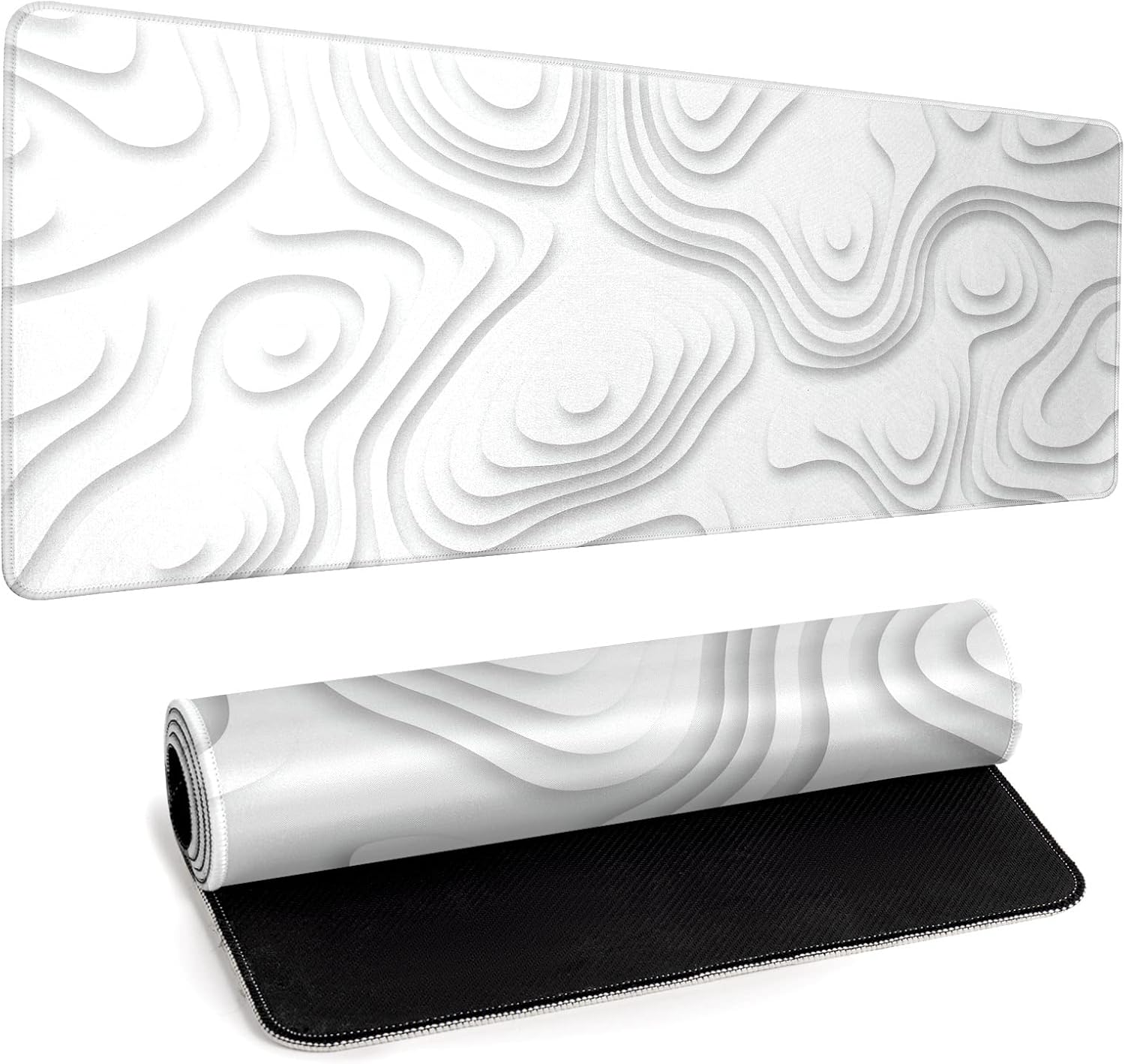 Solid Geometry Large Gaming Mouse Pad White Mouse Pad Gaming Big Desk Pad Desk Mat with Stitched Edge 31.5''x11.8'' Computer Mousepad Waterproof Desk Protector