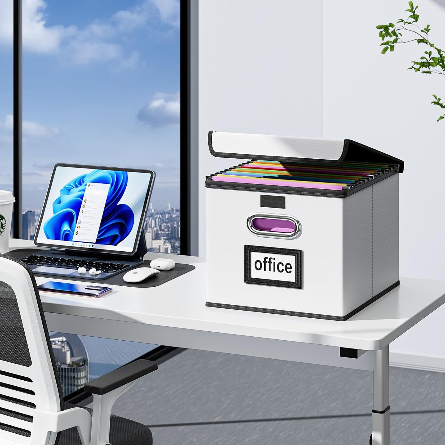 - Collapsible Multifunctional Filing Storage Organizer - The outer box with leather can be dustproof, inside and the bottom support is made of thickened cardboard, which is environmentally friendly and not easily deformed. The cover with Velcro not only allows us to cover the file box easily, but provides more storage space for the file. It also acts as a small filing cabinet for tax documents, legal files and other documents storage. When we are not using it, we can fold it up to save space.