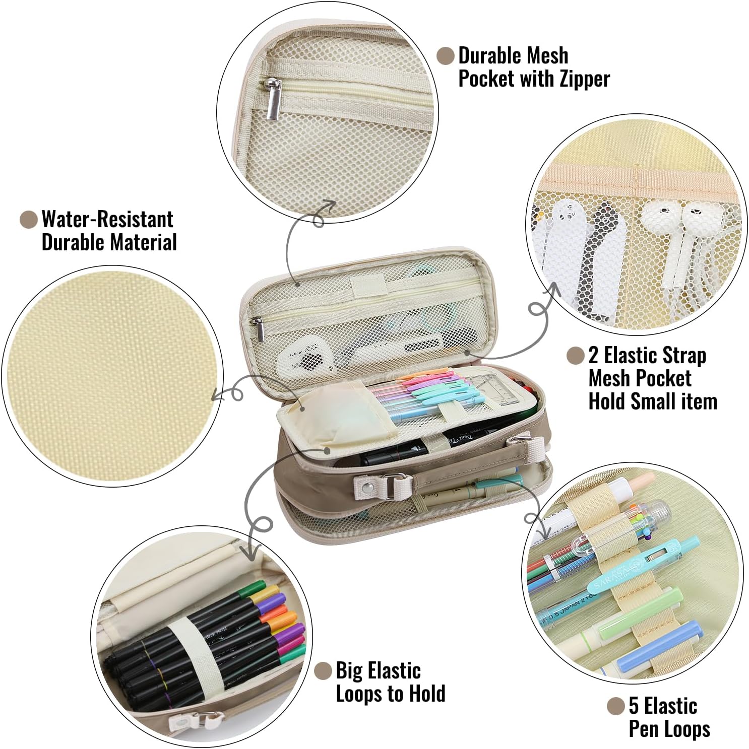 Pencil Case, Large Capacity Pencil Case Organizer; Double Zipper Storage Bag; Big Pencil Pouch for College School Office Teen Girl Boy Men Women Adult