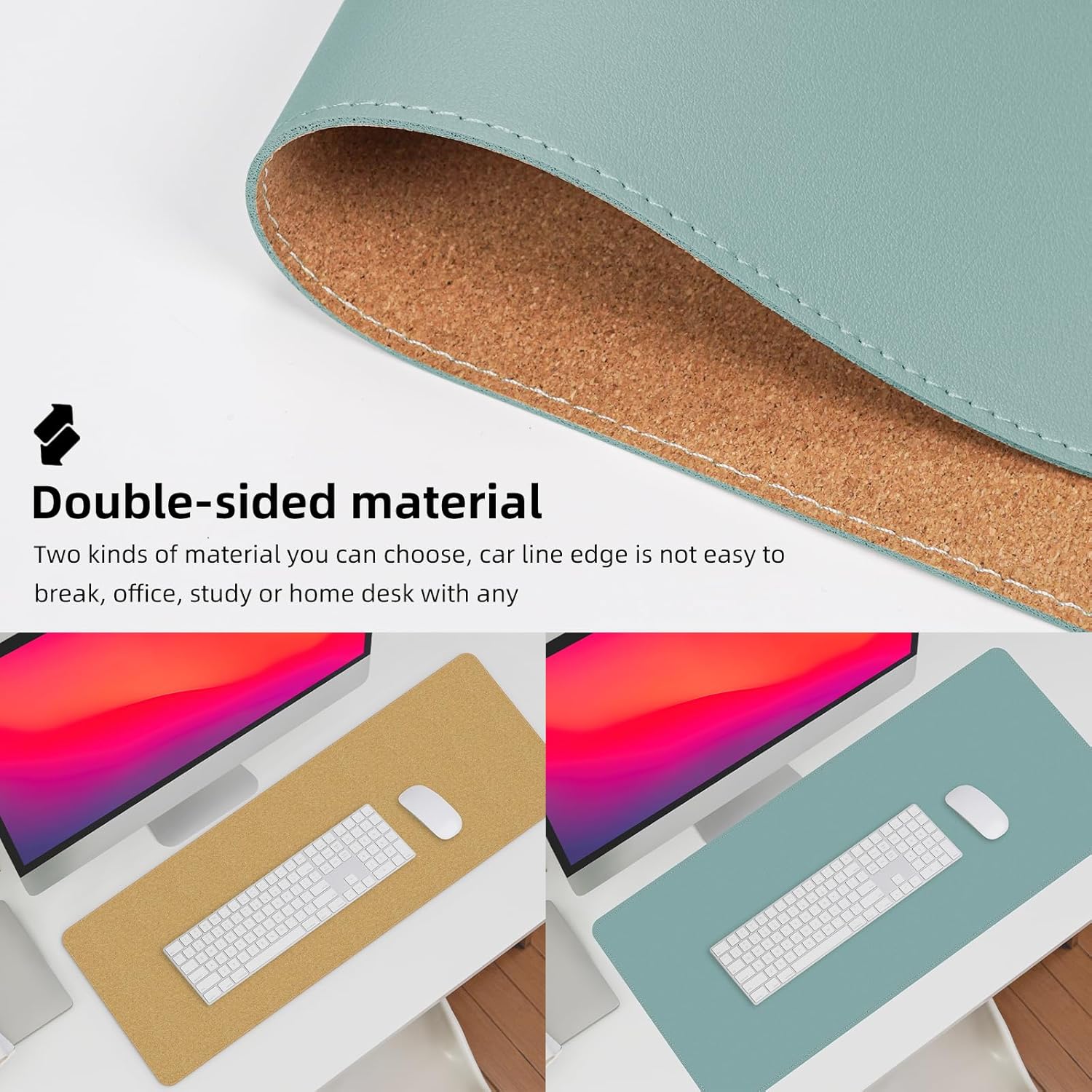 Leather Desk pad Protector, Large Desk mat with Natural Cork & PU Leather,Mouse pad,Non-Slip Office Desk Mat,Waterproof Desk Writing Pad for Office and Home (35in*17in, Light Blue)