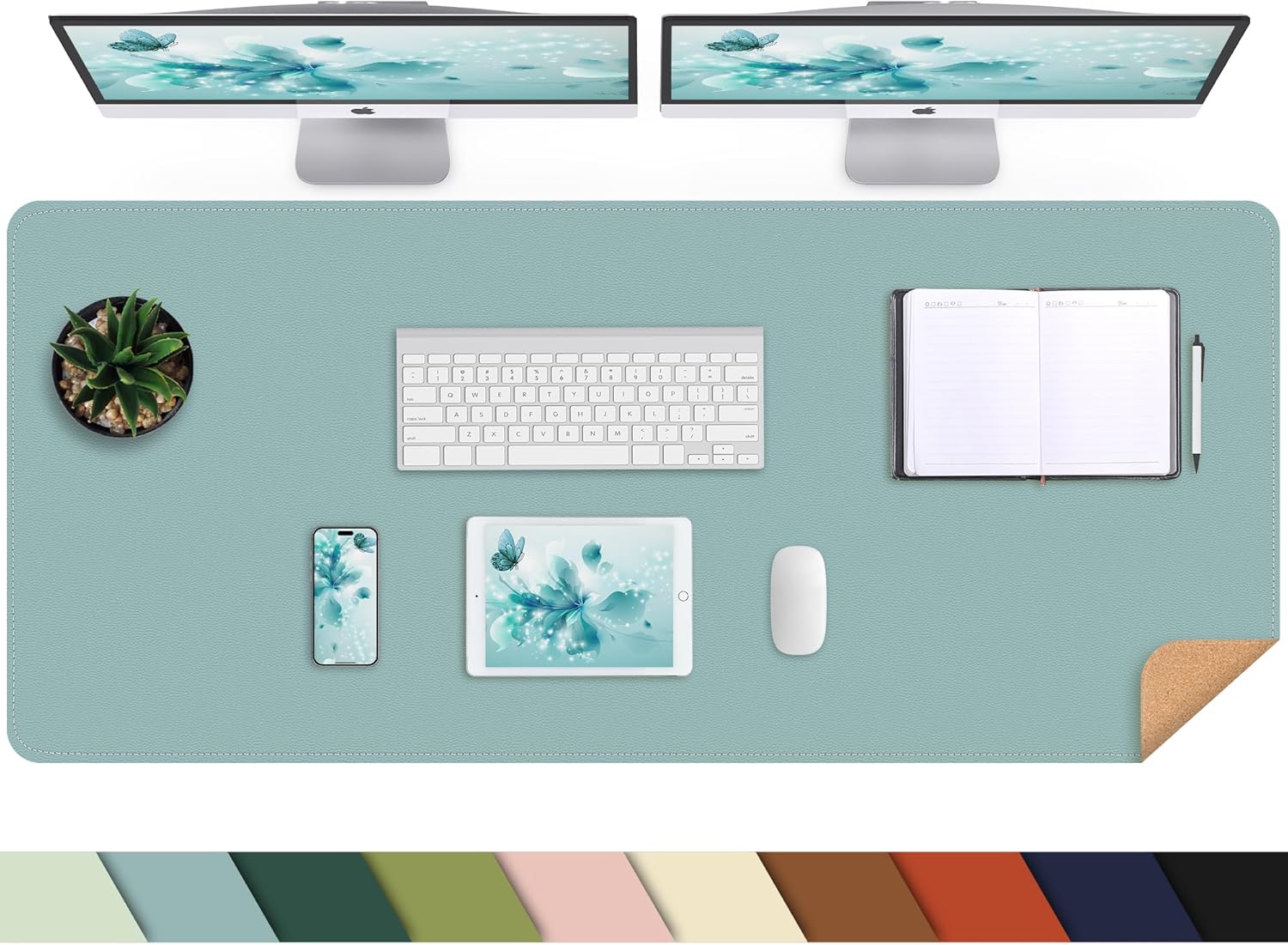 - Elevate Your Workspace: Our reversible desk pad is designed to complement any office or home desk with its premium materials and elegant black thread stitching. The natural cork base provides extra grip to keep your desk mat in place.